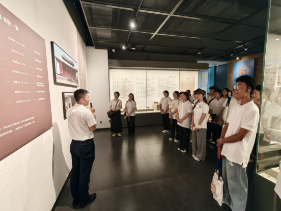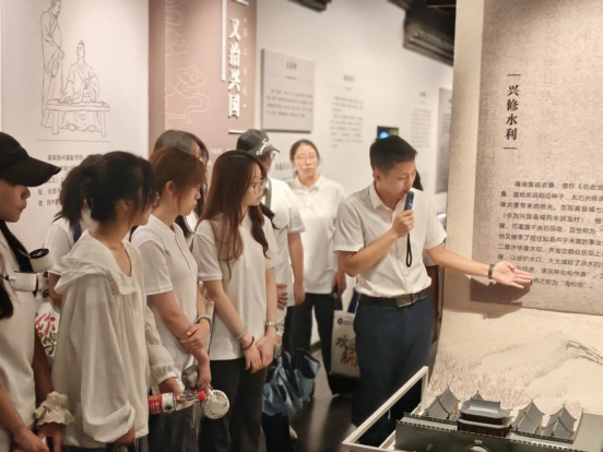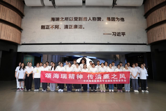 在庄严肃穆的海瑞广场前,学院党委书记杨文君率先为同学们阐明活动主旨与流程,着重阐释海瑞的生平及其廉政精神的时代价值。随后,新生们追随讲解员的脚步,透过展馆内泛黄的史料文献,仿佛穿越历史烽烟,深入探寻这位“海青天”——明代清官海瑞刚正不阿、廉洁奉公的一生,体悟琼崖先贤“一身正气昭日月,两袖清风鉴古今”的崇高品格。