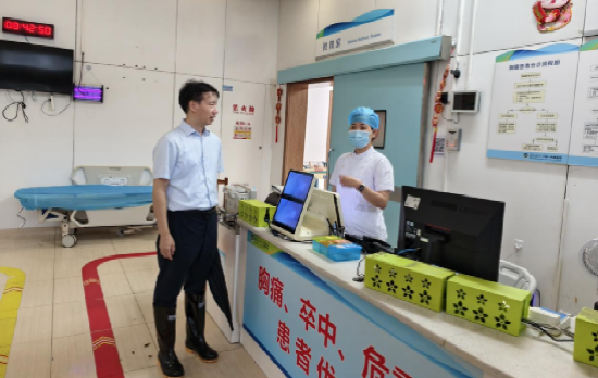 当天,副院长黄雄高带队巡查医院重点区域,亲切慰问一线值守员工,详细了解医疗应急保障与安全生产工作的落实情况,确保医院在极端天气下依然能够提供安全、高效的医疗服务。
