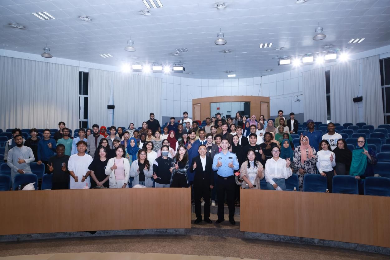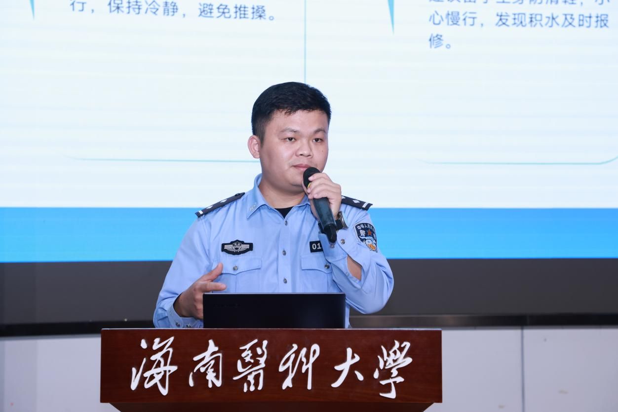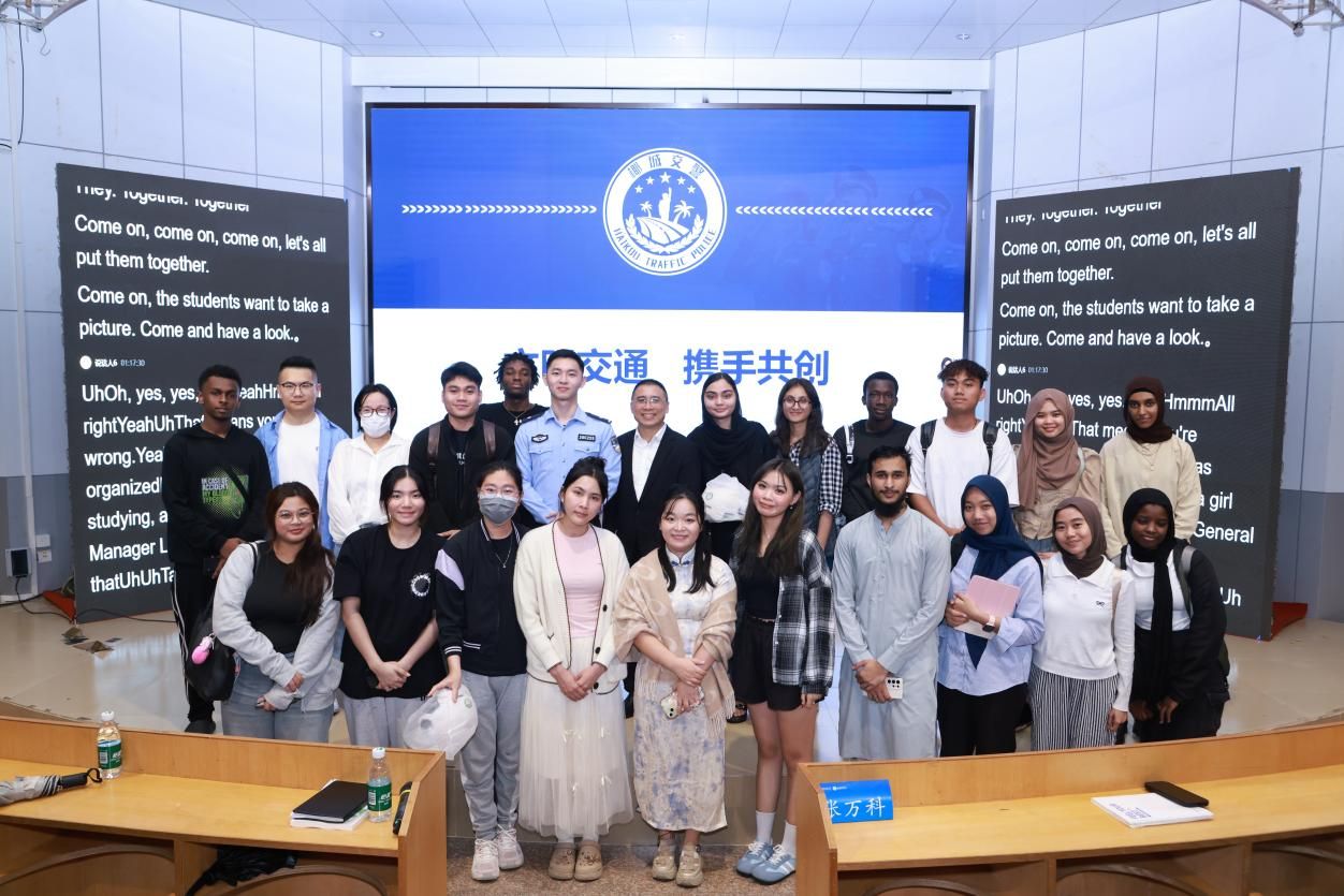 次日,海口市公安局交通管理支队法制宣传科吴松原警官针对交通安全主题展开深入宣讲。活动现场,他巧妙运用典型案例搭配安全事故视频,生动还原各类交通场景,深入剖析潜在风险,让国际学生直观感受交通安全至关重要性。从日常步行、骑行规范,到复杂路况驾驶要点,全方位覆盖国际学生在华出行可能面临的各类交通情境,为其送上一份实用且详尽的交通安全宝典。张万科号召国际学生“内化安全意识、外化文明出行、示范带动他人”,共筑海南自贸港文明交通风景线。