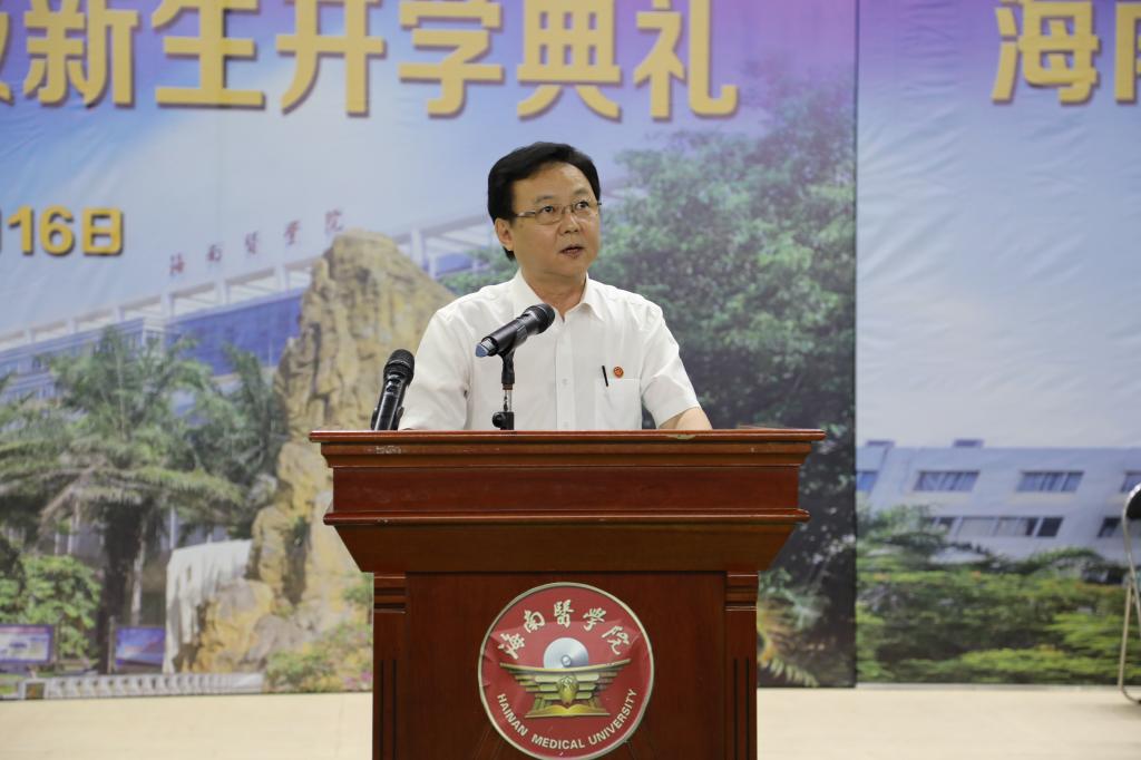 学校党委副书记、校长赵建农作题为《逐梦新百年,奋进自贸港,努力成为新时代卓越医学生》的讲话