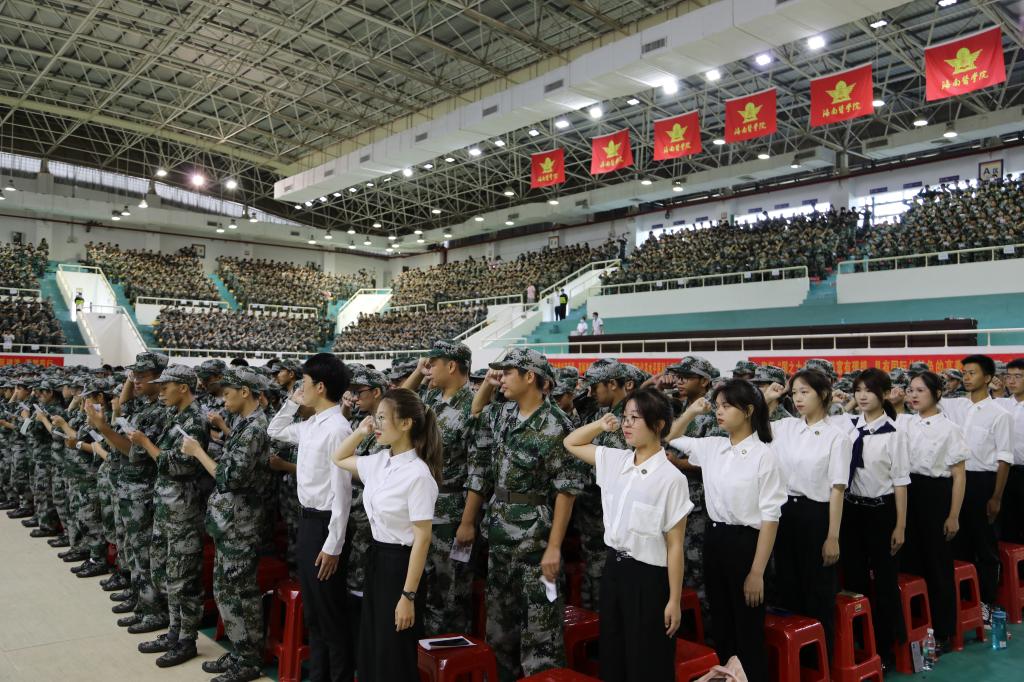 开学典礼在校领导给新生代表赠送校徽后,2021级全体新生同学坚定严肃的“医学生誓言”中落下帷幕。嘹亮的誓言在大厅上方久久盘旋,此次开学典礼的举行,预示3000多名新同学将饱含热情,将奋发有为、昂首阔步,发挥巨大的潜能去寻找人生的方向,在海南医学院度过自己人生中美好的大学生活。