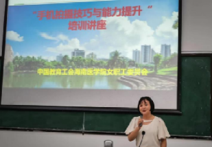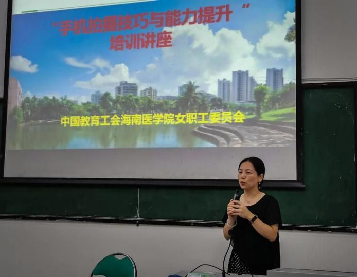 海南医学院工会副主席兼女工委主任张帆致辞,她倡导在座的每一位都应更好地认识手机摄影技巧,进一步提升手机摄影能力,记录新时代taptap点点的大发展和美好生活,也为工作提供高质量的素材。