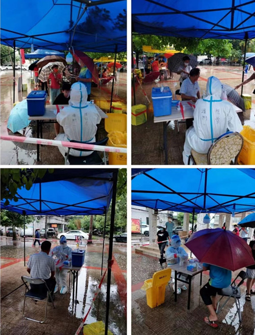 虽然遇到台风,风大雨大,但在核酸采集人员、社区工作人员及志愿者的共同努力下核酸采集工作顺利进行。