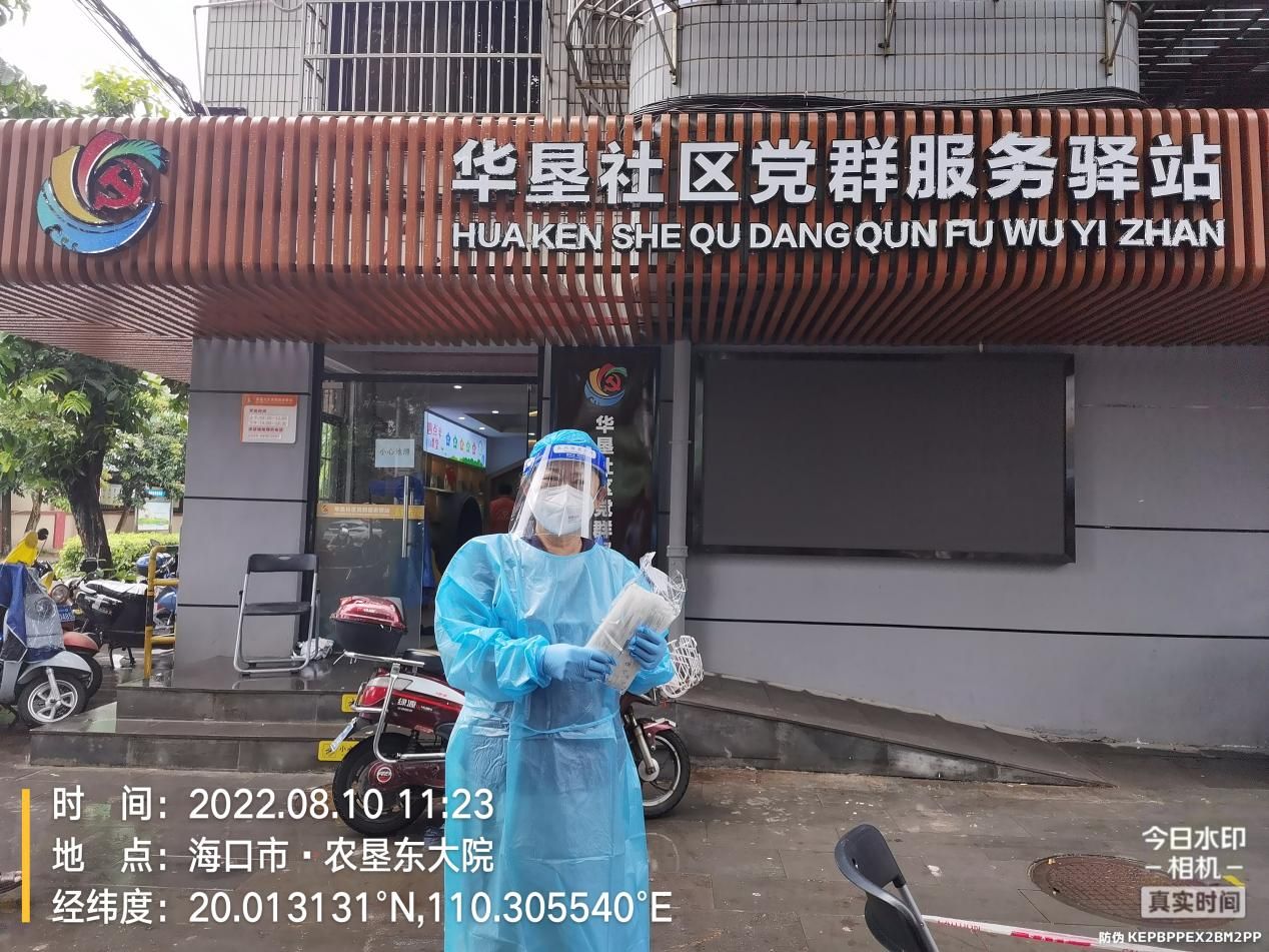 早上,一附院派出28名职工和15名学生安排到各个核酸采样点,采样时间从8时至23时。因受南海中部海面的热带低压影响,海口市今天多暴雨天气,志愿者们在风雨中开始了一天的采样工作。taptap点点督导专员、第一附属医院原副院长59岁的冯琼副院长主动报名参加志愿者服务,在农垦东大院采样点协助医护人员穿防护服,补充防疫物资,承担起后勤工作。