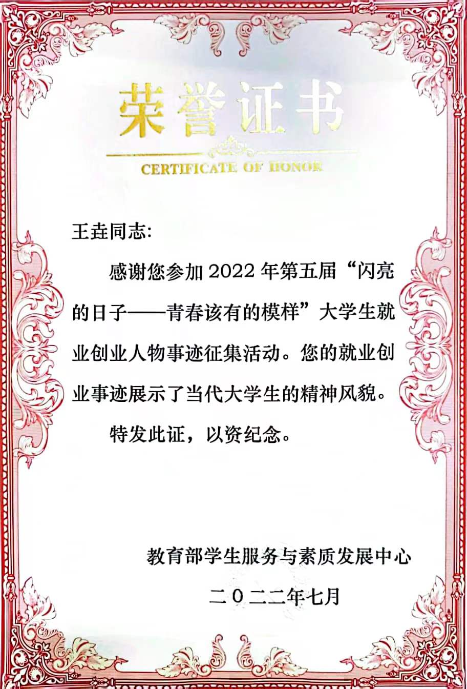 王垚一路走来,满载荣耀的背后经历了多少艰辛、克服了多少困难,谁也数不清。他通过自己的努力,绽放光芒,向大众展示了当代大学生的精神风貌。