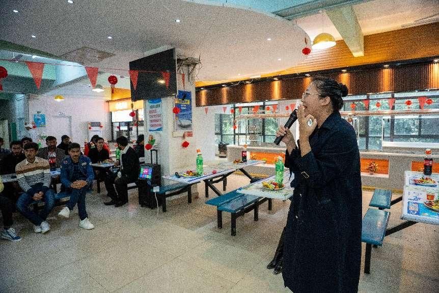 玉兔披金辞旧岁,祥龙焕彩贺新春。2月8日正值农历除夕前夕,海南医学院在第二学生食堂举行2024年师生迎新春共享年夜饭活动。海南医学院党委常委、副校长李现红,学工处处长熊燏及国际教育学院党委书记张万科等相关负责人,与来自巴基斯坦、印度、印度尼西亚、尼日利亚、加纳、科摩罗、喀麦隆等20多个国家的400余名留校国际学生欢聚一堂,共话新春,一起感受传统中国年的浓浓年味,共同迎接农历甲辰龙年的到来。