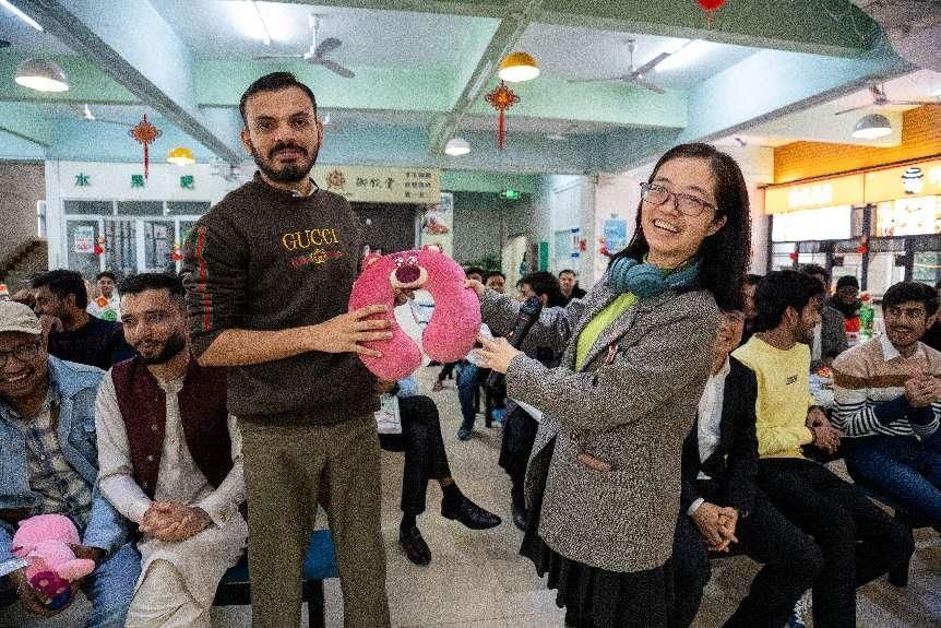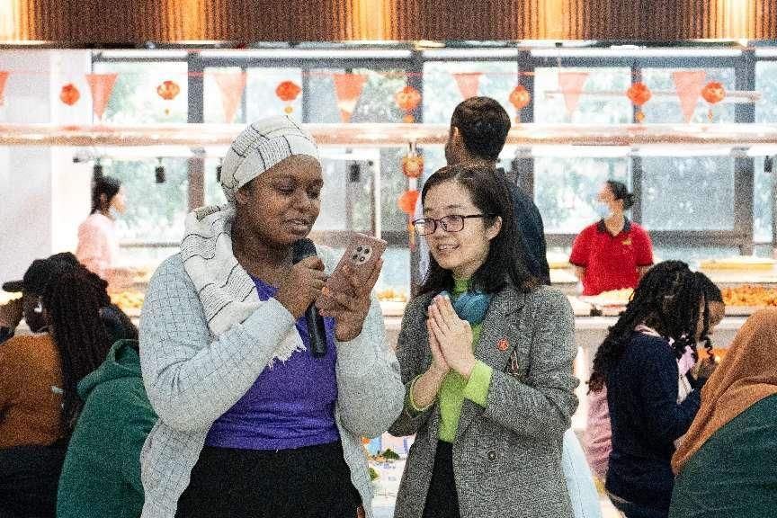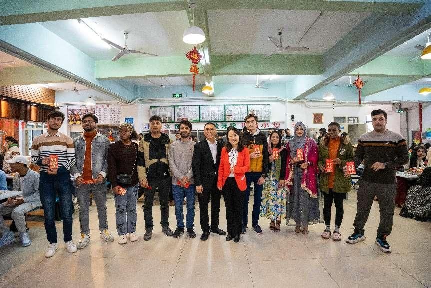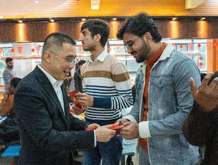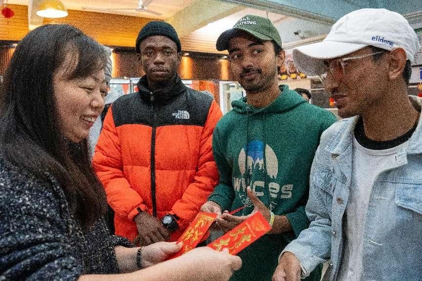 同学们来自不同的国家,有着不同的文化背景,但在这个温馨的时刻,大家就成了一家人,共同庆祝着中国的新春佳节。学校还为参加活动的同学准备了新年红包,李现红说:“红包是长辈给小辈的祝福和关爱,希望同学们都能感受到温暖。”同学们开心地接过“祝福”,互道“新年好”“新年快乐”。