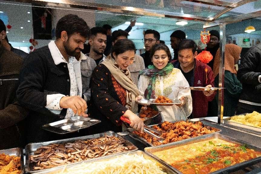 食堂的橱窗里摆满了符合国际学生口味的自助餐,空气中弥漫着食物的香气,现场欢声笑语,气氛温馨祥和,师生们充分感受到了中国传统佳节的喜庆和热烈。