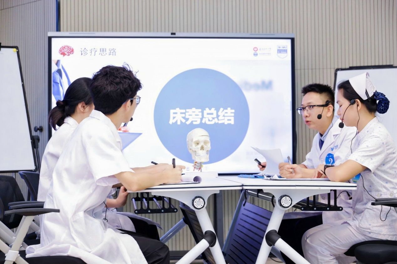 决赛采用模拟病房教学查房模式,每支团队参赛时间约为50分钟,在规定时间内完成查房前准备、病房查房、讨论三个环节内容。各位参赛教师充分准备、精神饱满、程序规范,在比赛中展示了较高的临床带教水平。在病例汇报、床旁问诊、查体等环节中,各位带教老师对实习医师进行指导,通过启发式教学,就疾病基础知识和研究最新进展等展开讨论,引导实习医师主动观察、分析和解决临床问题,培养科学严谨的临床思维。同时,教学查房的过程贯彻了以病人为中心的服务理念,从而进一步加强实习医师理论学习与临床实践相结合的能力。