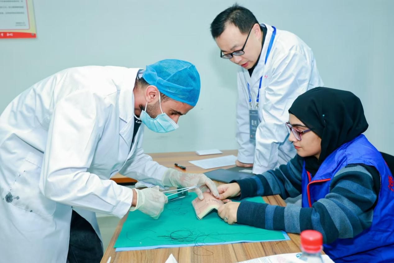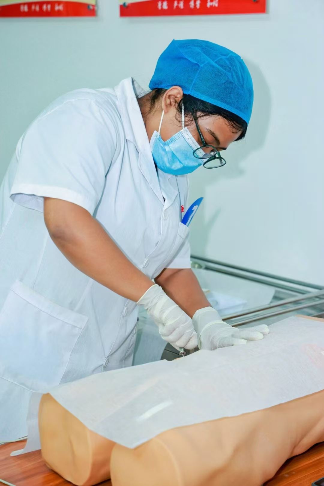 比赛过程中,选手们秉持“敬佑生命、严谨求实”的专业精神,通过个人赛的形式,依次完成神经系统体检、胸部体检、缝合打结、消毒铺巾、穿刺和急救各个站点的考核。选手在技能比赛中严格遵守操作规范,操作规范、精准、娴熟,展现了精湛的技术水平,同时体现出个人良好的心理素质,彰显了学校国际学生较强的专业素养和综合能力。