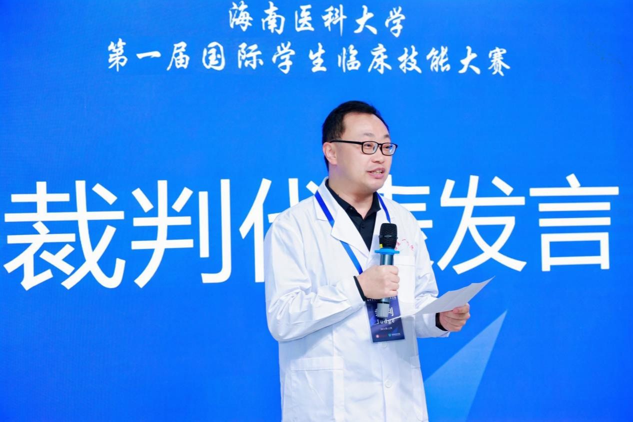 第一附属医院泌尿外科周治彦老师代表裁判发言。他表示,经过系统培训和精心准备,选手们在决赛中表现优异。希望学生们能保持精益求精的精神,在医学道路上取得更大的成就。