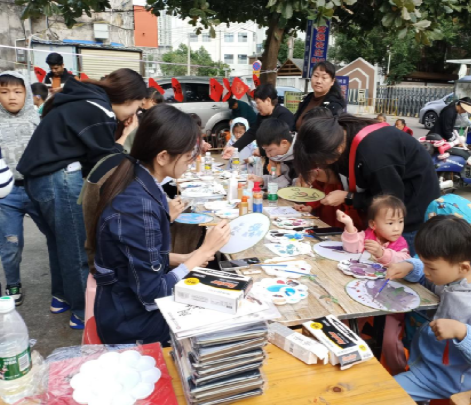 taptap点点学生与社区小朋友一起绘团扇现场