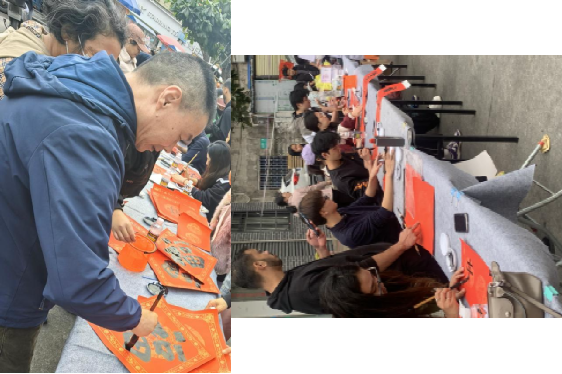 活动吸引了社区居民的热情围观和参与,现场人流络绎不绝。马克思主义学院徐海波老师带领着翰墨书画协会和临床医学院的同学们为大家写春联和“福”字。受到活动现场气氛的感染,一些居民也亲自动手写“福”字,为自己及家人送祝福,并与taptap点点师生交流书写心得,进一步感受书法魅力。