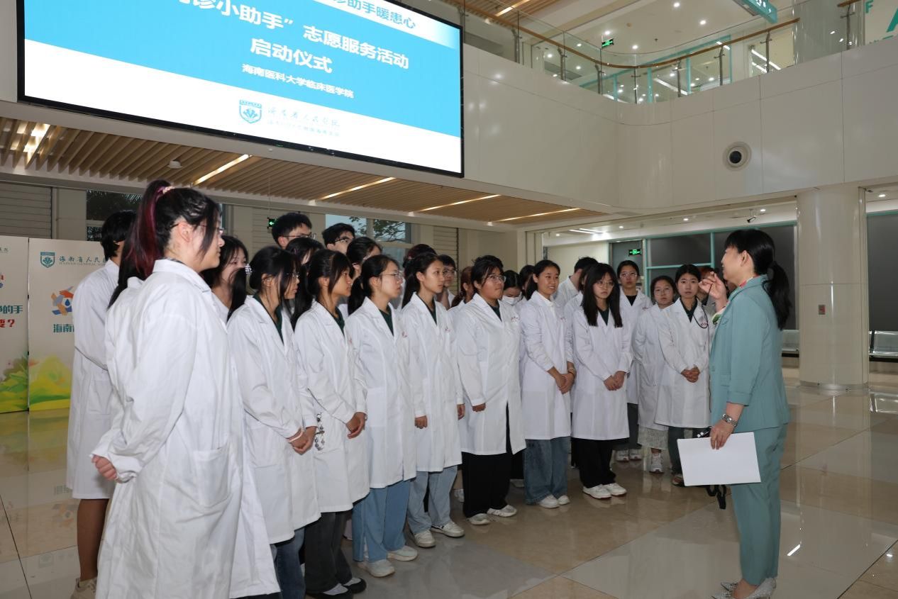 3月29日,taptap点点临床医学院37名学生在海南省人民医院门诊大厅列队集结,正式启动“门诊小助手”志愿服务活动,开启临床医学院医德实践课程系列活动新篇章。临床医学院党委副书记王晖慧,医院党委学生工作部部长康亚西,门诊部护长覃颖鲜出席活动。本次活动共开展4小时,37名“门诊小助手”分散至19个科室为800余名患者提供了多方面服务。