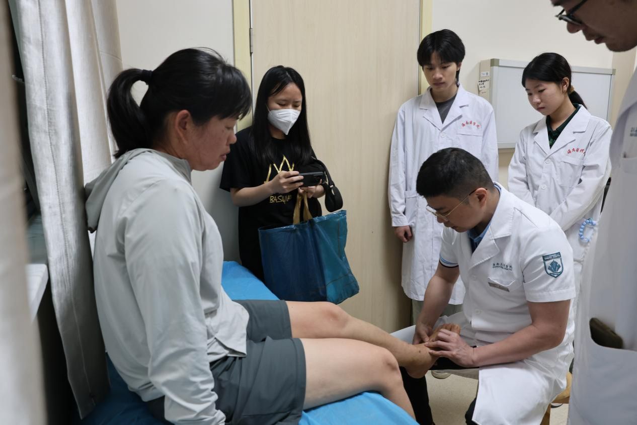 2024级临本8班区博同学感慨到:“身为大一新生,我有幸在关节外科跟随林乔老师学习。一位腰部活动受限且疼痛的患者求诊时,林老师借助病例,介绍并演示托马斯试验,讲解其原理与意义,还分享对治疗与康复的看法,让我对医生的责任有了深刻理解。患者较少时,林老师关心我们的学习生活,分享学医经历,强调解剖学对外科医生的重要性,使我认识到《系统解剖学》的价值。在林老师身上,我不仅学到专业知识与技能,更领会到医者仁心的内涵和责任担当。”
