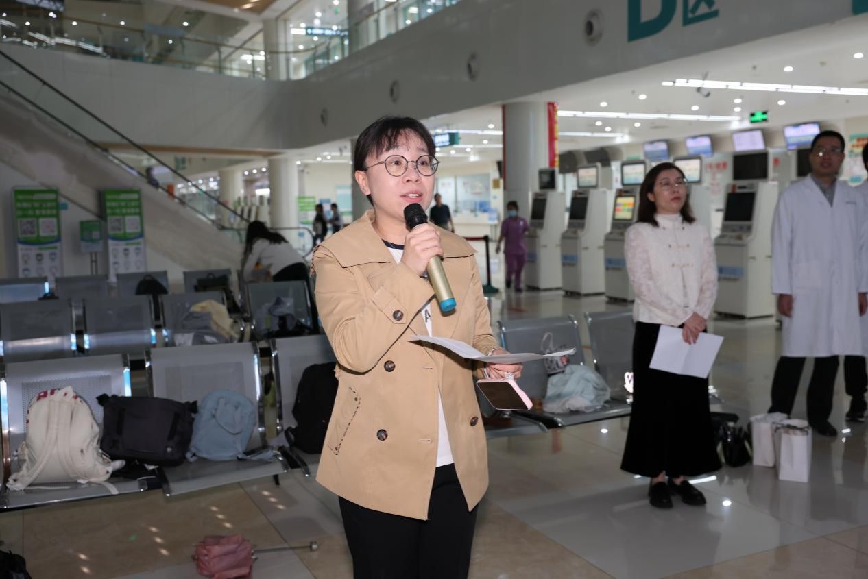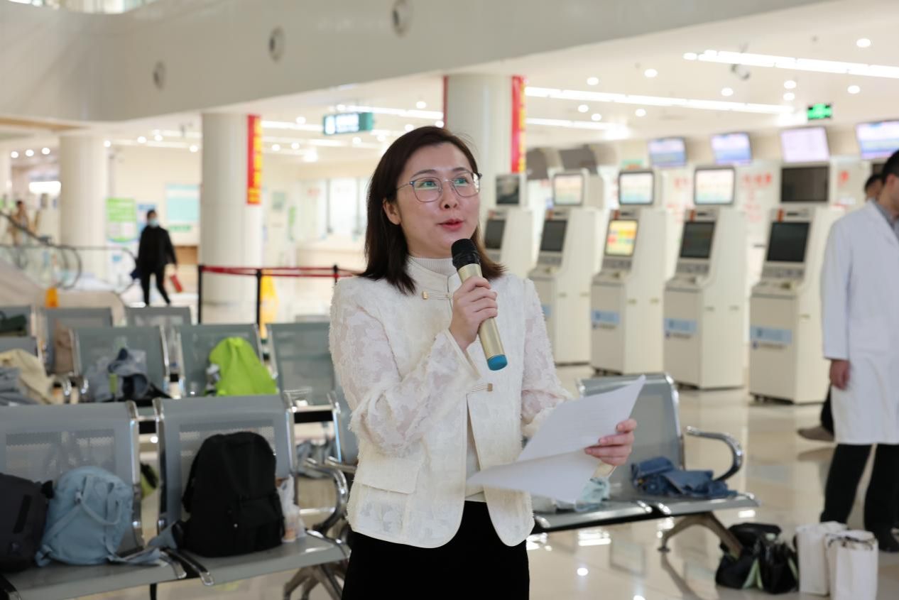 王晖慧在致辞中阐述了“门诊小助手”活动的重大意义与目的。她强调,“门诊小助手”志愿服务活动绝非一场流于形式的实践,而是培育医学生医德仁心的重要契机。这一活动通过沉浸式的门诊实践,让他们始终心怀对生命的敬畏,践行医者的神圣使命。同时,她对学生提出三点期望:珍惜实践机会提升专业素养、遵守纪律注重自身形象、用心服务患者传递温暖。