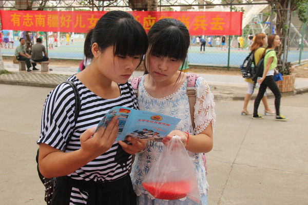 据了解,征兵办宣传人员共发送《大学生征兵宣传册》500余份,并为广大前来咨询的学生详细解答了征兵政策变化,时间安排,年龄身高要求,报名程序,优惠政策等热点问题。