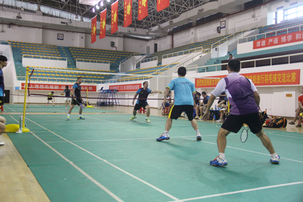 交流赛在taptap点点宋子文体育馆举行。在和谐融洽的氛围中,来自两校的30余名教职工羽毛球运动员分别进行了男子双打、女子双打和男女混合双打三个项目共20多场的友谊比赛。平时立于三尺讲台庄重而严肃的老师们,在进入体育馆后,立刻变成了矫健的运动健儿。男教师一个个杀球、勾球的动作,一次次跳跃扑救,都展现了老师的魅力。女教师也毫不逊色,在一记记精彩的挥打之中展现了无限风采。比赛赢得了在场观众阵阵喝彩和掌声。最终,双方以比分6:6握手言和。场下两校教工队员相互交流,谈球论球切磋球技。