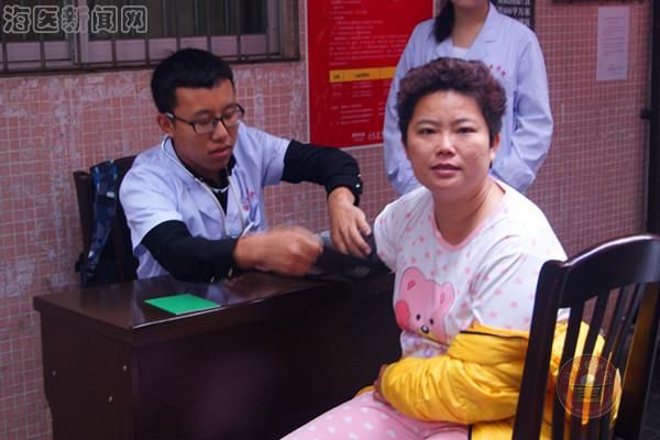 志愿者为居民测血压