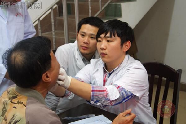 志愿者为居民检查口腔