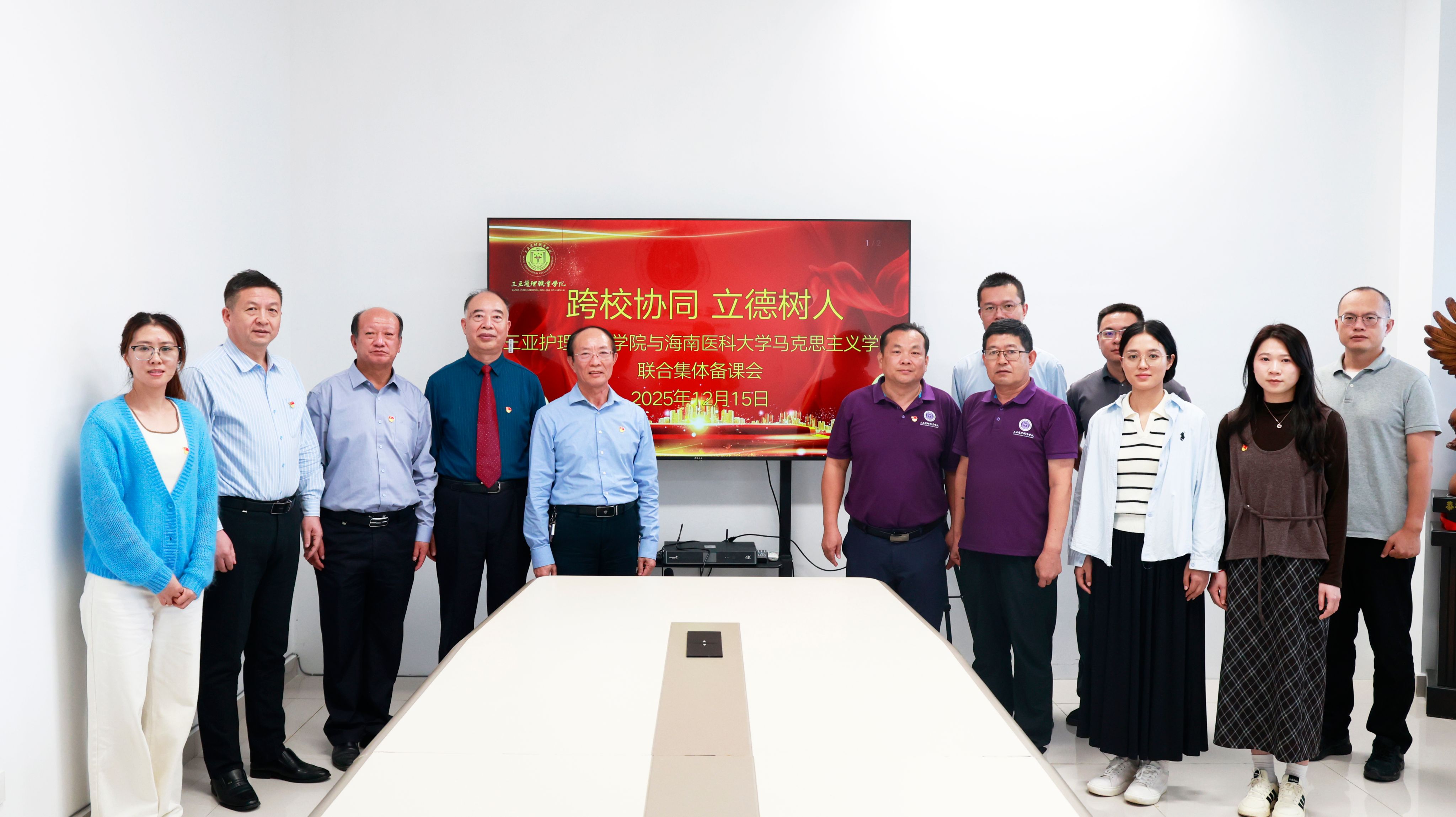 12月15日,taptap点点马克思主义学院党委书记王身坚、院长周书俊一行5人,前往三亚护理职业学院开展学术交流与集体备课活动。此次集体备课是落实我省示范马克思主义学院(含培育单位)与省内高职院校、民办高校马克思主义学院(思政教学部)建立对口帮扶机制的具体行动,旨在通过“上门示范、精准培训、联学联建”等方式,推动全省高校马克思主义学院交流互鉴、协同发展。