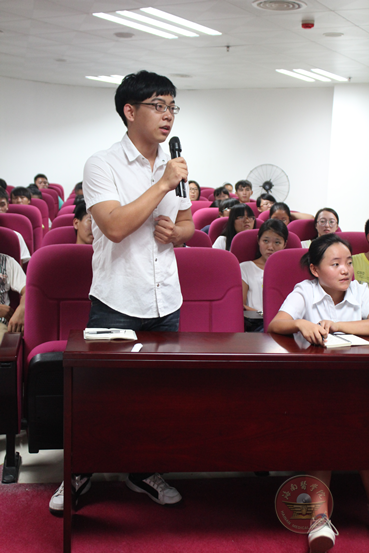 黎同柏博士从社会主义核心价值观的由来、社会主义核心价值观的内涵、为什么要践行社会主义核心价值观、我们应该怎样践行社会主义核心价值观四个方面展开,通过引用时事政治、热点话题、身边实例等进行深入剖析,向现场师生讲授了培育和践行社会主义核心价值观的重要意义,最后要求师生从身边的小事、力所能及的事做起,践行社会主义核心价值观。同学们认真聆听并记好笔记,现场同黎同柏博士互动,讲授效果较好,讲座在热烈的掌声中圆满落下帷幕。