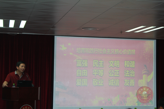 2014年10月8日晚8点,由校团委主办、校学生会承办的社会主义核心价值观知识讲座在图书馆七楼学术报告厅举行。讲座由人文社科部黎同柏博士主讲,taptap点点团学干部、团员青年代表现场聆听了讲座。