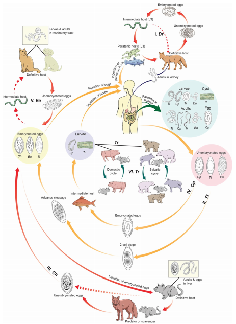 本研究从全健康的角度汇总分析无尾感器纲寄生虫,有助于线虫感染的检测和预警,有利于寄生虫病的预防和控制。