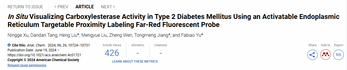 6月19日,急诊创伤学院于法标教授团队在《Analytical Chemistry》在线发表题为“In Situ Visualizing Carboxylesterase Activity in Type 2 Diabetes Mellitus Using an Activatable Endoplasmic Reticulum Targetable Proximity Labeling Far-Red Fluorescent Probe”的论文。