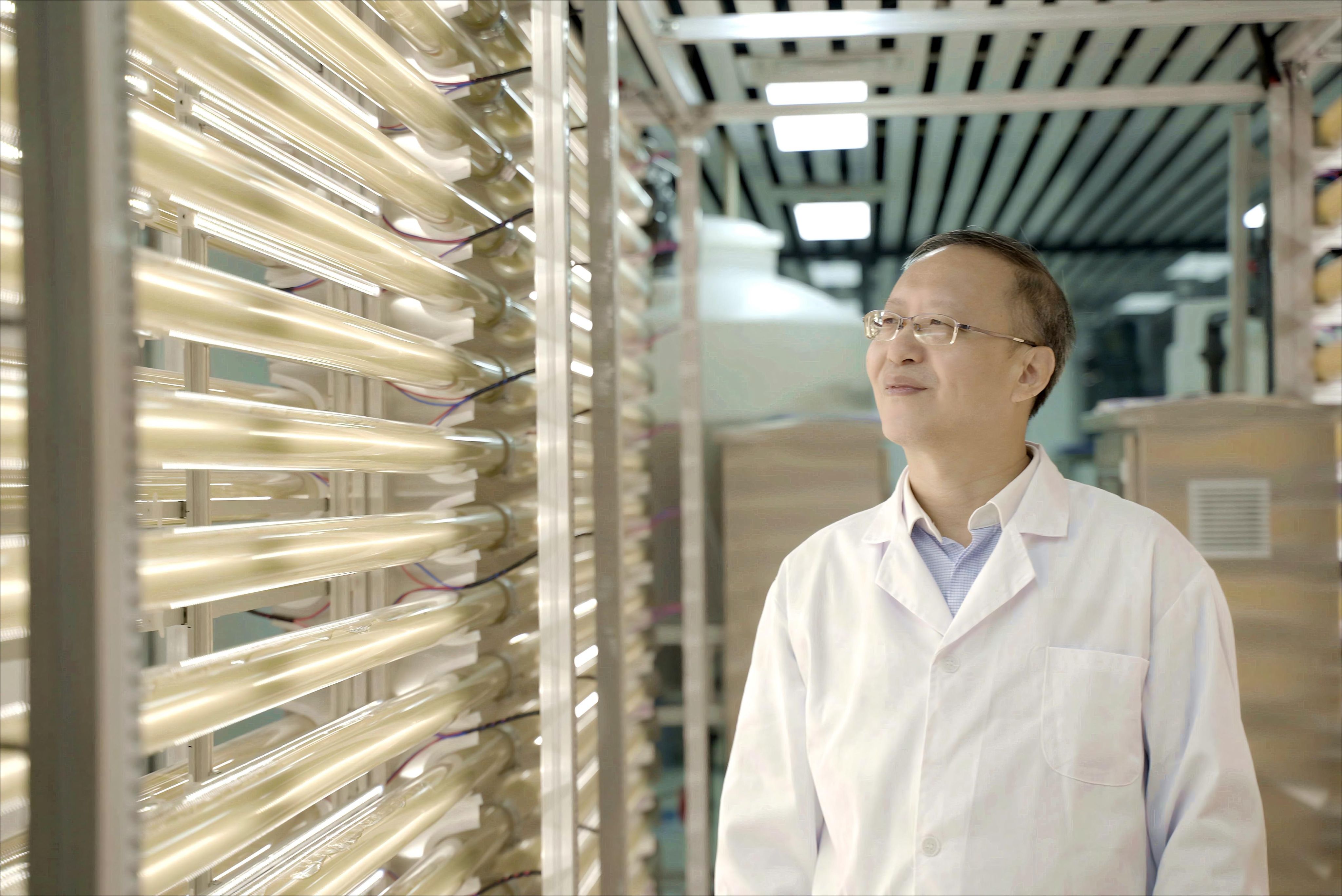 2022年,吴军团队迎来了崭新的机遇。随着LED冷光源时代的到来,团队开始研发微藻管道式工程化大规模培养装置。与传统的玻璃瓶和塑料桶培养模式相比,管道式培养模式光源更稳定、效率更高。在管道壁贴上LED灯条,并控制好温度和流速等条件,就可以实现微藻天然化合物的量产,单管道产量可达百毫克量级。在一定程度上解决了海洋微藻药源分子利用的化学实体短缺问题。目前,单管道最大培养体积可达2500升。这是“质与量”的飞跃。值得一提的是,微藻管道式工程化大规模培养模式与国家正在提倡的海洋生物制造高质量发展战略不谋而合。