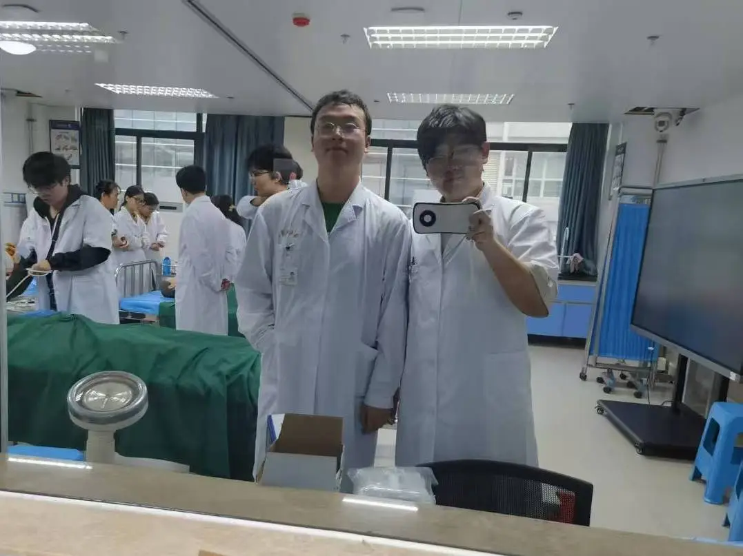 他坦率地表示,刚入学时对于临床医学的理解和认知,还停留在“需要大量积累”的层面。于是,他决定先把脚下的路走踏实,认真梳理专业知识、整理课程笔记,“啃”下一本本教材。后来学校实行“早临床、多临床、反复临床”的教学改革,大一的他就迎来了第一次临床见习,跟着带教老师走进病房,看着老师用专业知识为患者缓解痛苦,才突然明白:“课本上的文字不是死知识,是要落到病床前、用到实践里的本领。”也就是这份认知,让他生出了“试一试”的勇气。