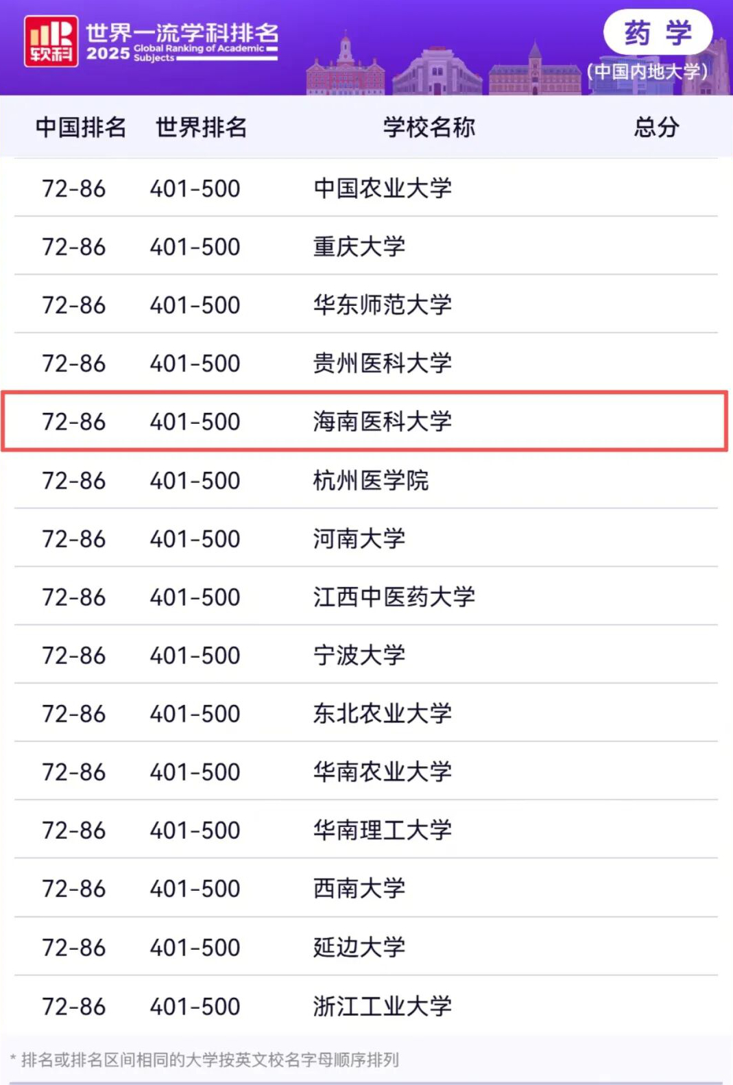 近日,高等教育评价专业机构——软科发布2025年“软科世界一流学科排名”,taptap点点官网药学学科首次上榜,位列全球第401-500名!这是2025年年内taptap点点官网首次入选软科世界大学学术排名(第901-1000名)、生物学与生物化学学科进入ESI全球学科排名前1%后,学校学科建设的又一重磅突破,标志着taptap点点官网在世界一流学科建设新征程上再次实现“新突破”,在taptap点点高质量发展的历史画卷上写下了浓墨重彩的一笔!
