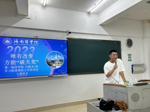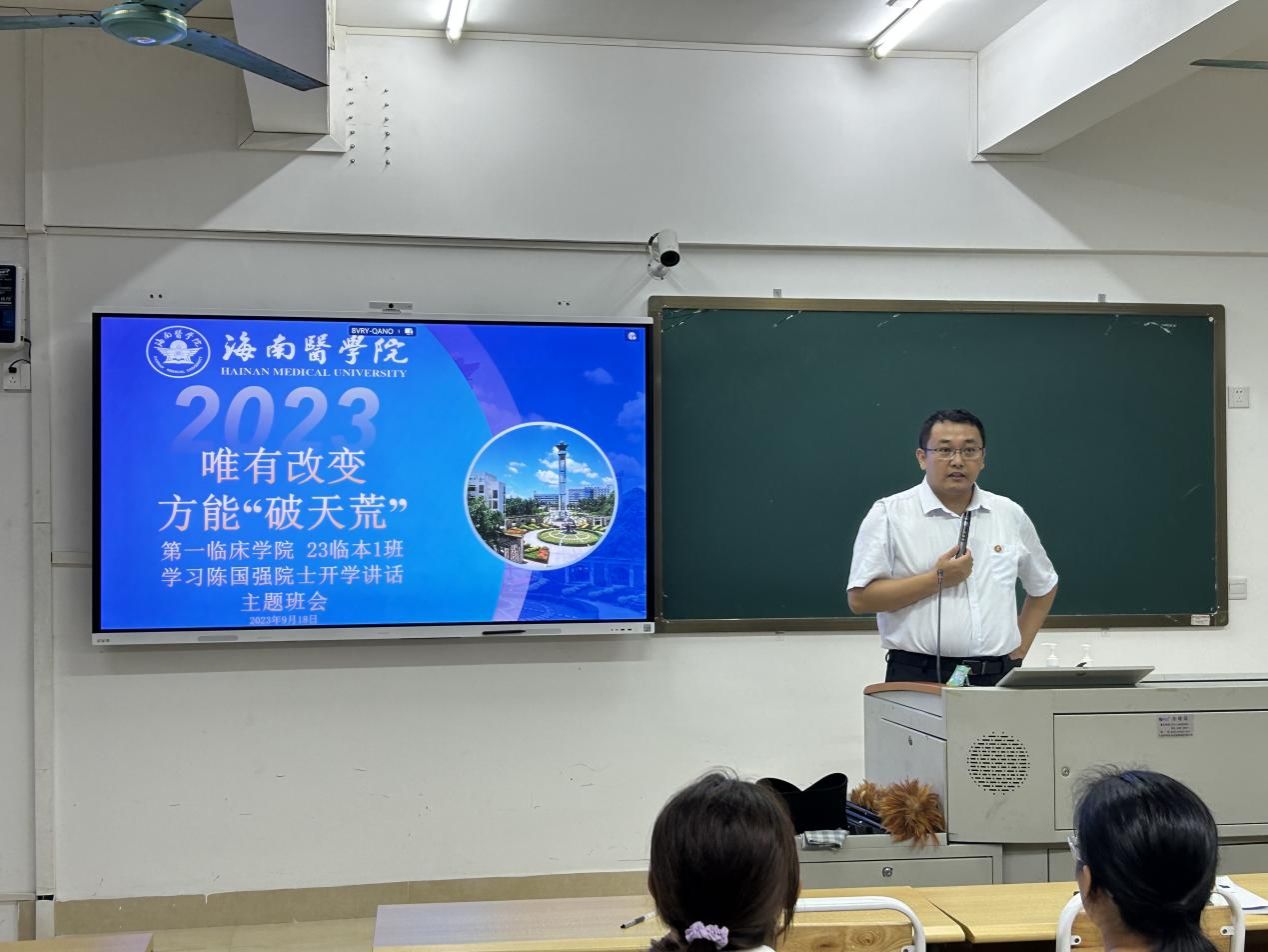 9月18日上午,海南医学院2023级新生开学典礼隆重举行,中国科学院院士、海南医学院校长陈国强为学生讲“开学第一课”《唯有改变,方能“破天荒”》。