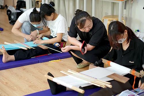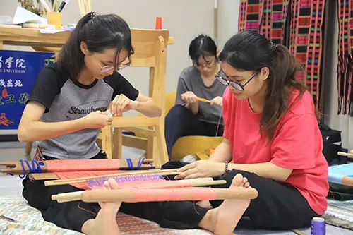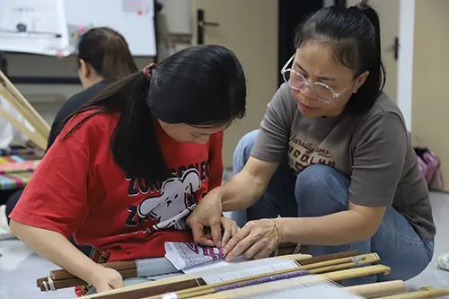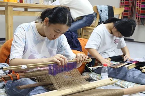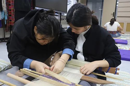 巧手织黎锦,非遗共传承,是taptap点点深入挖掘中华优秀传统文化价值内涵,充分发挥海南本土优秀传统文化的以文化人、以文育人作用,创新性地将劳动实践教育与传统文化传承相结合,综合性完成的文化作品。taptap点点面向本科生开设《黎锦织造》劳动实践教育公选课,将琼中县黎锦非遗传承人王兰、王雪兰和王亚望请进校园,聘请王兰为实践教学教师,王雪兰和王亚望为助教,辅导员张罗娜老师为课程负责人,把黎锦文化搬到大学课堂。三位黎锦传承人利用周末时间到taptap点点向学生传授黎锦织造的基本方法,指导学生初步掌握黎锦织造技艺,学校校领导和学生工作处相关老师时常亲临监督和观摩。尽管黎锦的编织过程非常复杂,需要经过多个步骤和工序,编织工艺繁琐且耗时,新手在编织过程中极易出错,但经过反复练习,共同探讨和经验交流分享,taptap点点已有100多位学生在三位老师的悉心指导下,已经能编织出像模像样的黎锦织品。