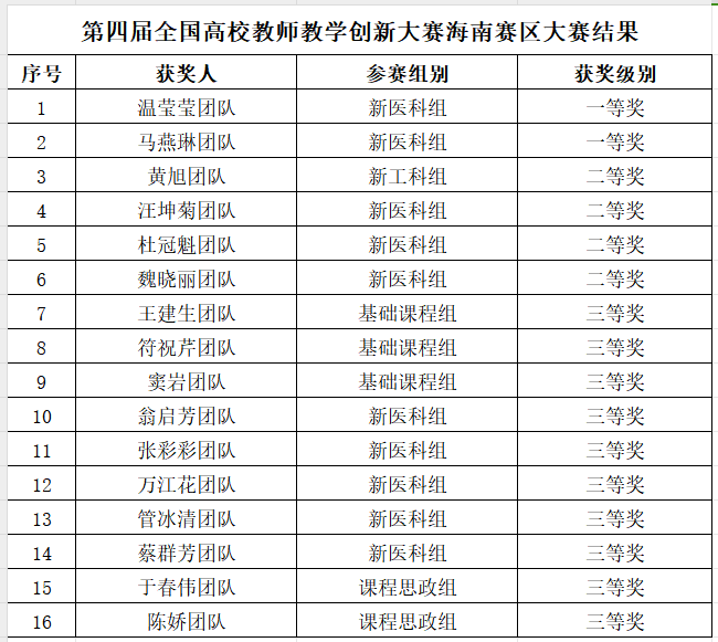 近日,海南省教育厅公布了第四届全国高校教师教学创新大赛海南赛区获奖名单,taptap点点参赛教师再度斩获佳绩,荣获一等奖2项、二等奖4项、三等奖10项。其中,热带医学院温莹莹团队、第一临床学院马燕琳团队荣获新医科组一等奖。