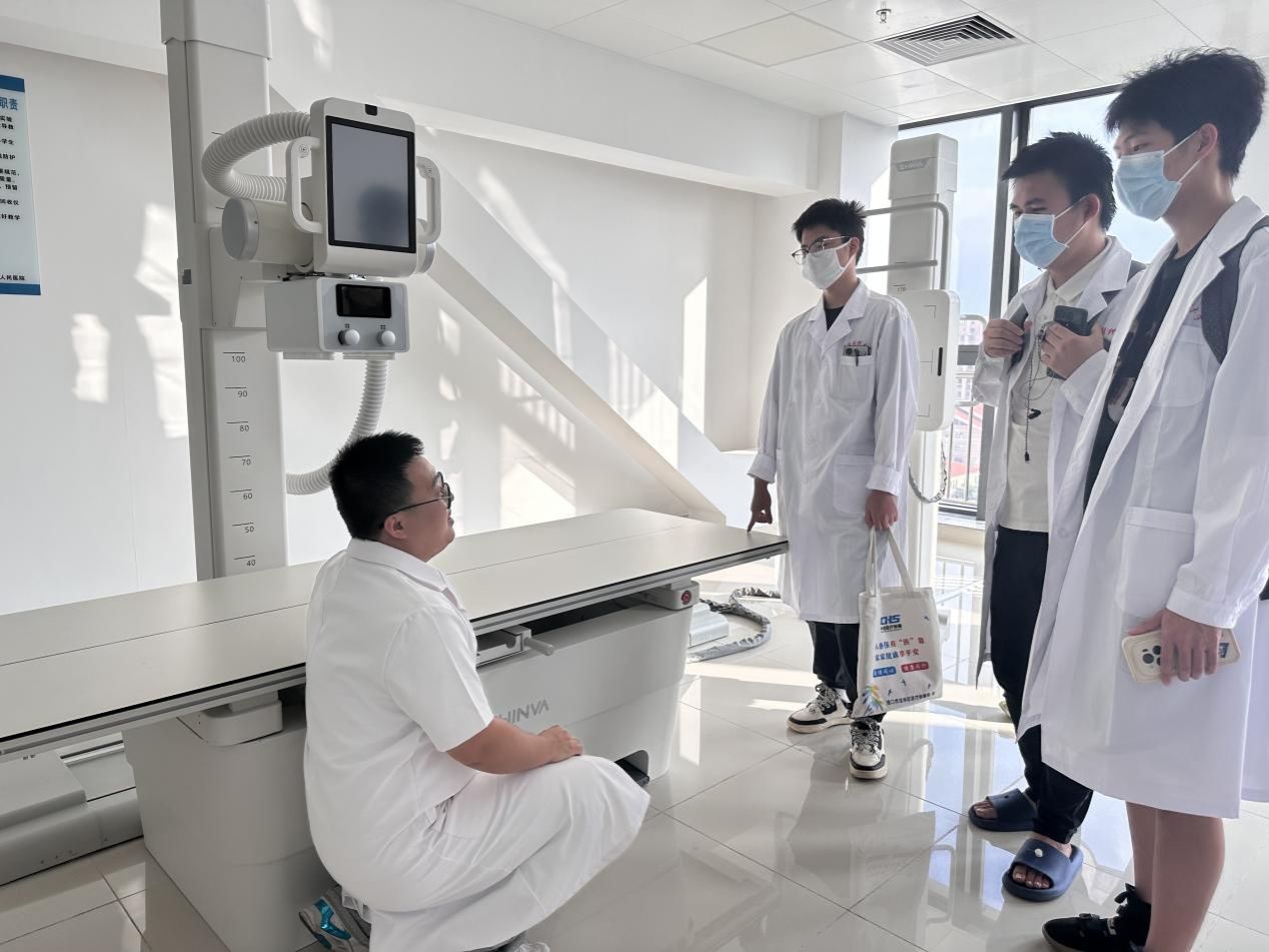 在放射科,技术教师详细讲解一张片子从临床医师开具检查单、前台预约、技师接单、拍摄前准备、拍摄注意事项、图像后处理及影像医师阅片全过程,让新生们了解到一张影像图片产生的不易。