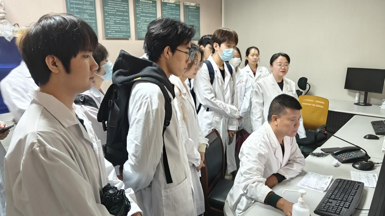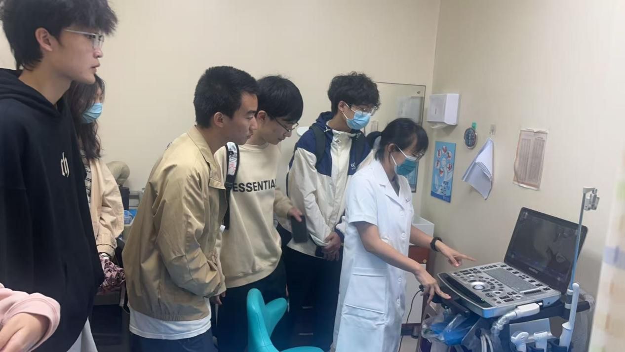 超声科内,教师演示探头选择、图像优化等实操技巧,让同学们互相操作,了解超声检查的意义,强调技术细节对诊断支持的重要性。