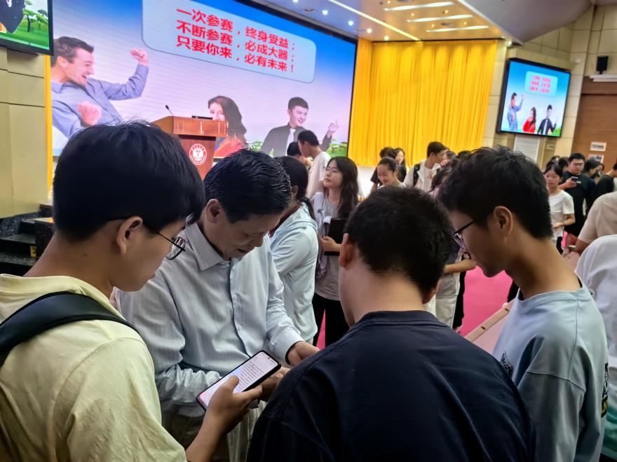 讲座结束,众多师生仍意犹未尽,大家围着陈教授继续请教项目创意打磨、团队组建等疑惑。陈教授均耐心解答,逐一点评,还主动留下联系方式,方便持续为同学们提供指导。