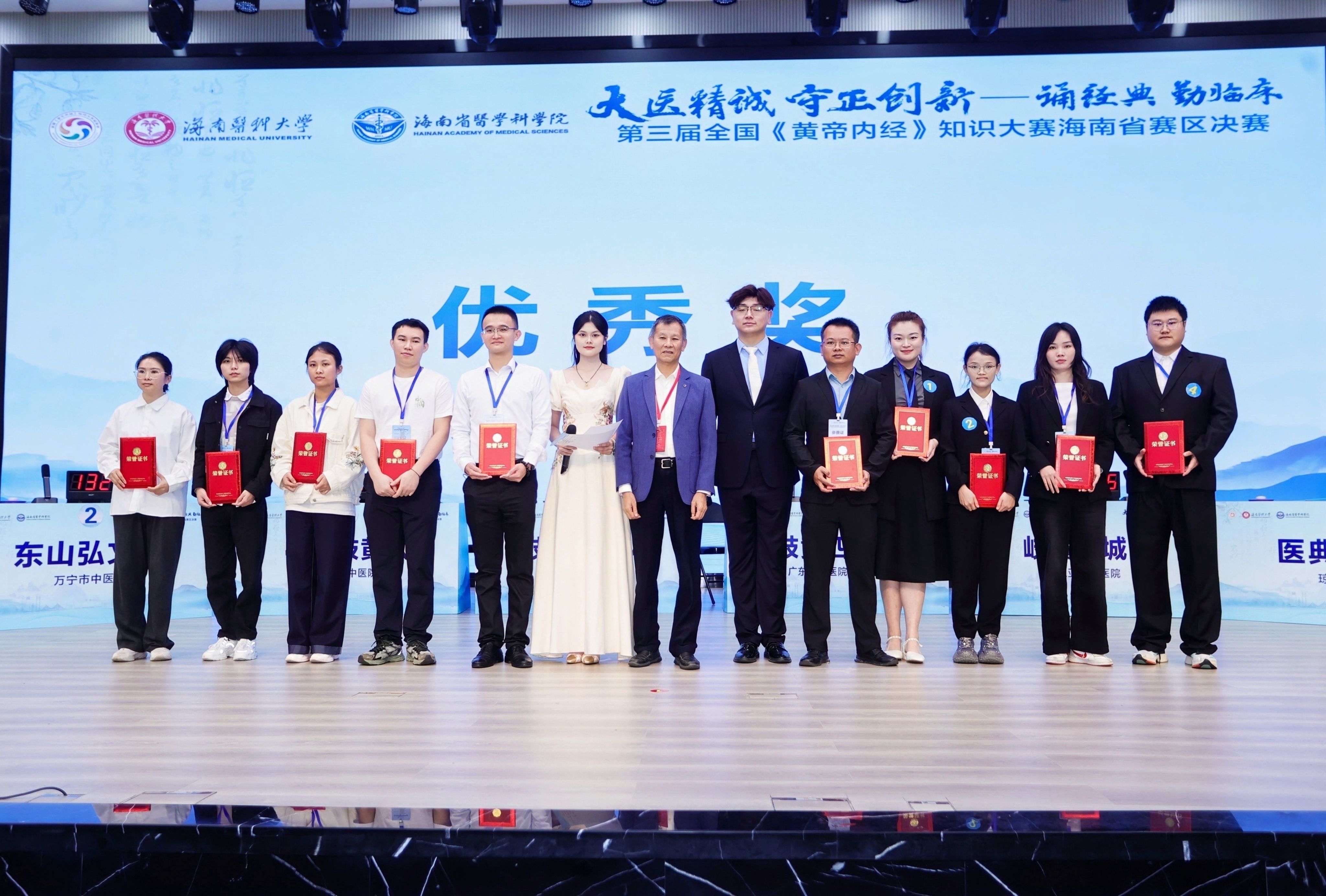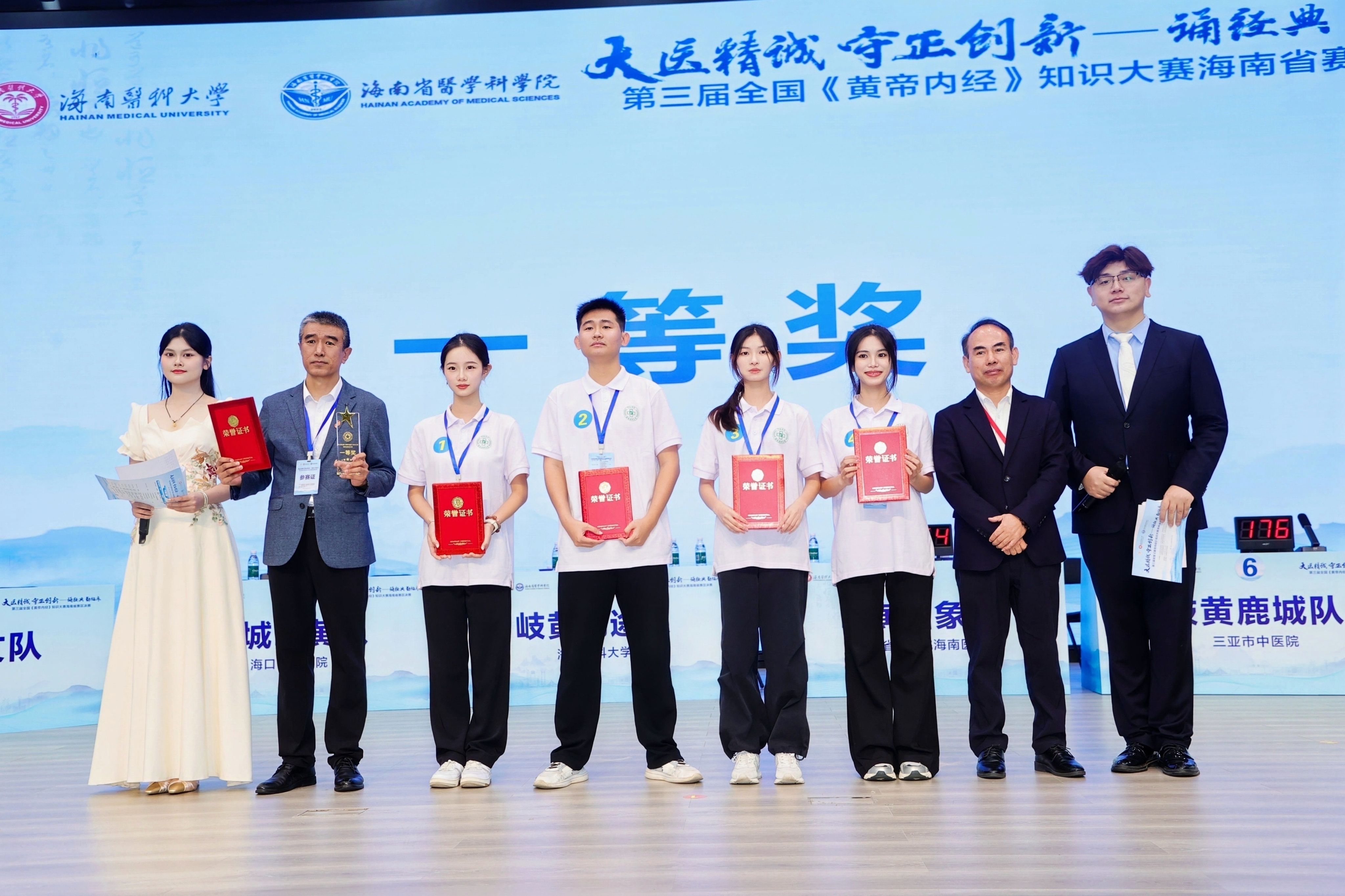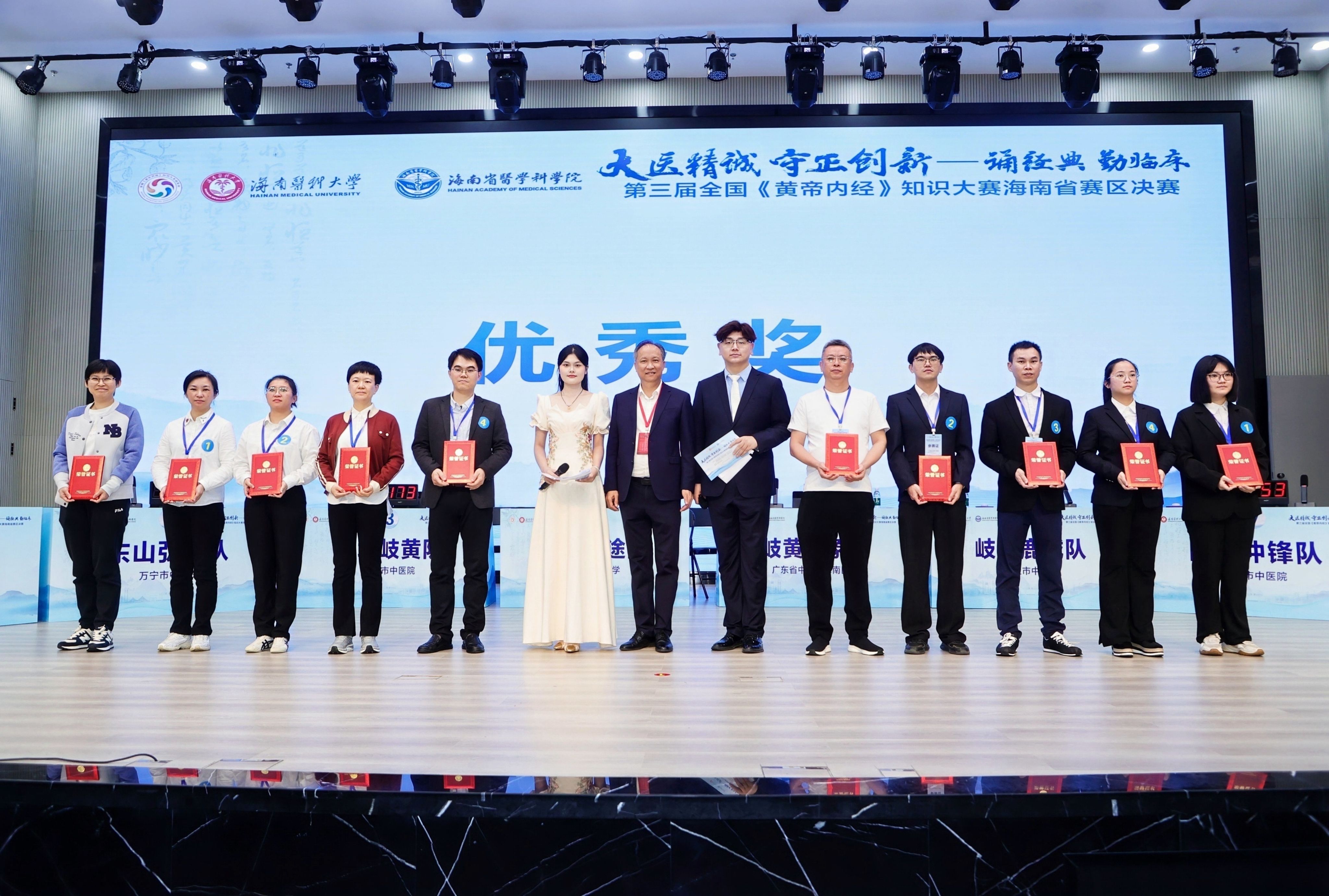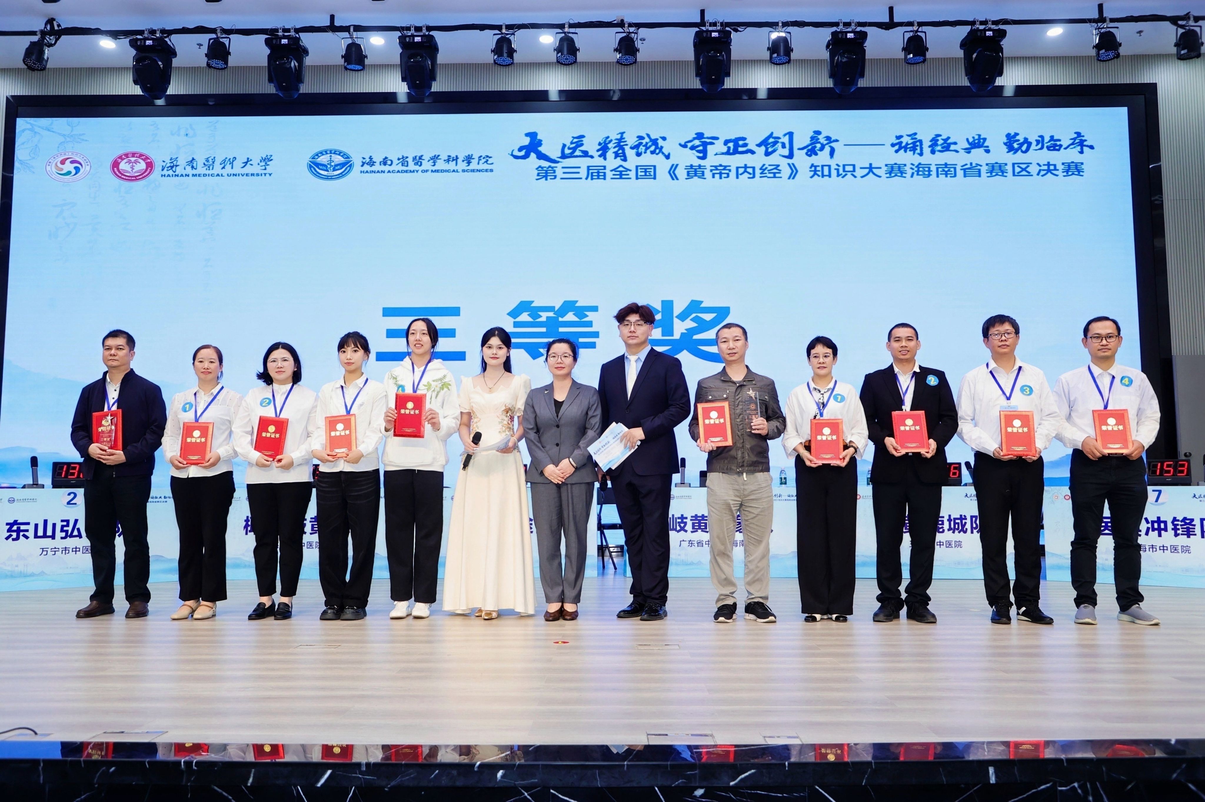 最终,taptap点点中医学院“岐黄鸿途队”荣获一等奖;三亚市中医院“岐黄鹿城队”获二等奖;海口市中医医院“椰城岐黄队”、广东省中医院海南医院“岐黄四象队”荣获三等奖;琼海市中医院“医典冲锋队”、文昌市中医院“文昌杏林队”、万宁市中医院“东山弘文队”、五指山市中医院“五指探玄队”荣获优秀奖。比赛还设置了颁奖环节,领导嘉宾为获奖团队逐一颁发奖杯与证书。