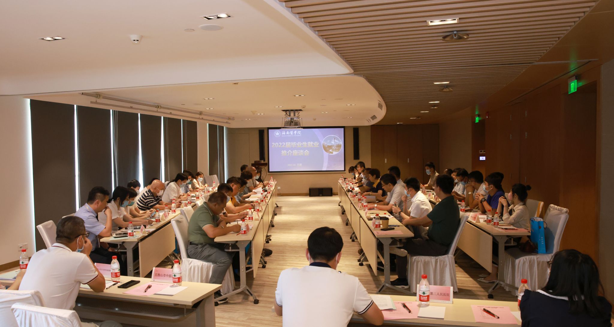 赵建农一行在琼海市召开海南医学院就业推介会。在推介毕业生时,他表示海南医学院历来以服务海南自由贸易港建设为己任,在人才培养体制机制、办学方向和招生规模等方面不断探索创新,切实提升应用型人才培养质量,满足用人单位人才需求,努力为毕业生创造就业机会。他希望各用人单位能够齐心协力、同向同行,全力助推毕业生充分的高质量就业。他表示,海南医学院将以用人单位需求为导向,加快教育体制改革,加快人才培养体系的搭建,实现产教融合、协同育人、精准对接。
