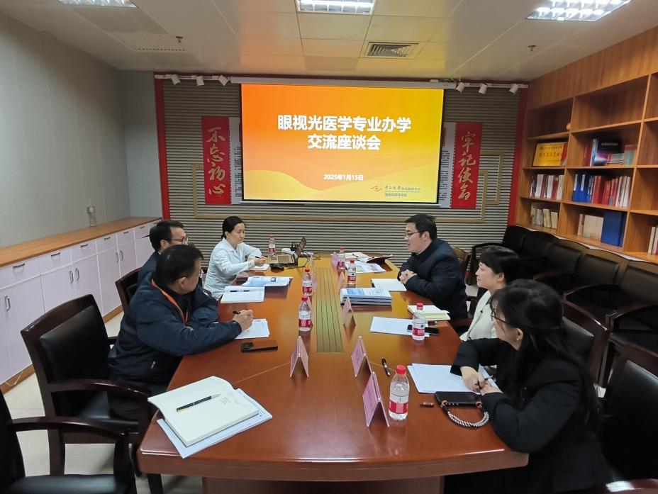 随后,调研组来到海南省眼科医院,与该院书记刁红星、院长李加青等进行交流。双方围绕眼视光医学专业的教学经验、面临的挑战及未来发展规划进行充分讨论,分享了各自在专业建设方面的成功经验和创新思路。