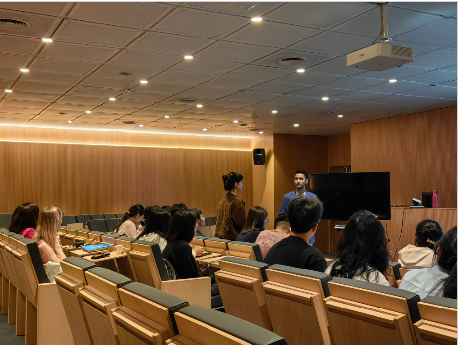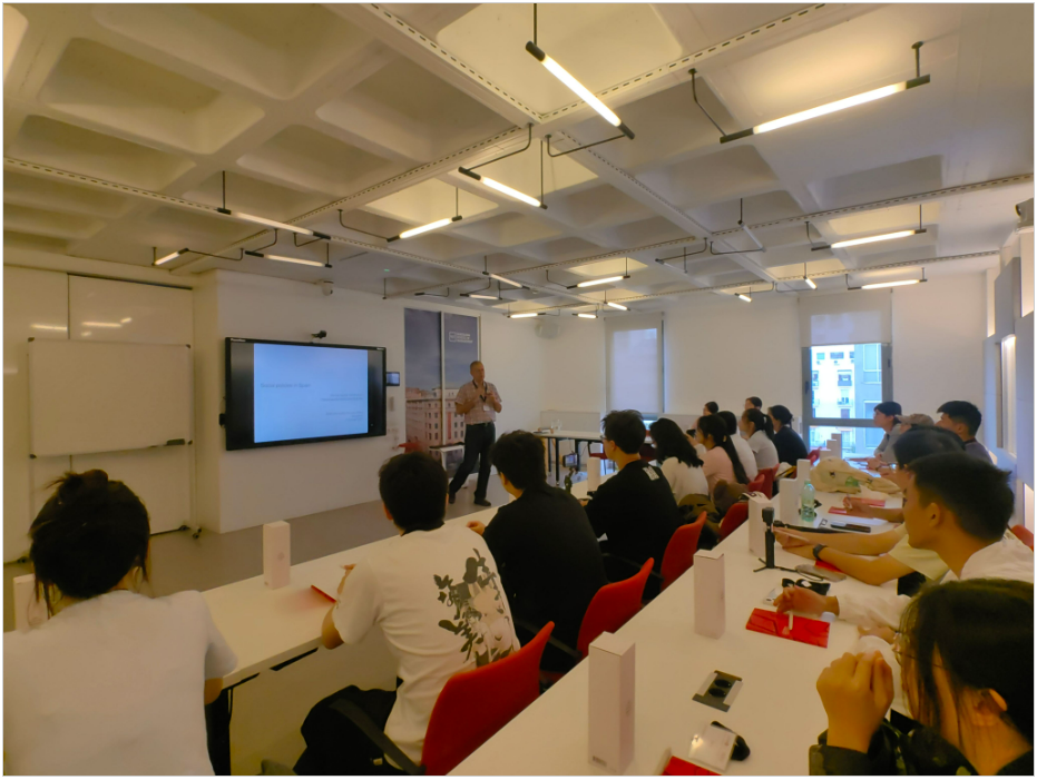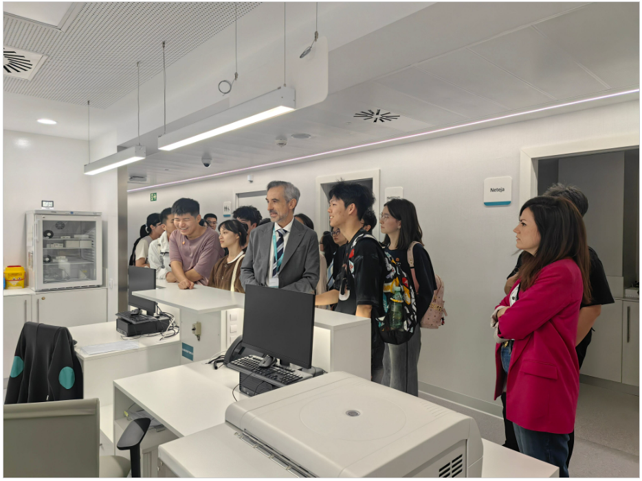 研学团深入参访西班牙多所知名学术与医疗机构,系统学习医学领域前沿知识,了解相应政策。在加泰罗尼亚国际大学,同学们聆听了由Carlos García Forero博士主讲的“西班牙的医学事业与研究”课程,以及Adrián González Marrón博士讲授的“西班牙卫生体系与公共视角”课程,全面了解西班牙医学前沿动态与公共卫生政策。