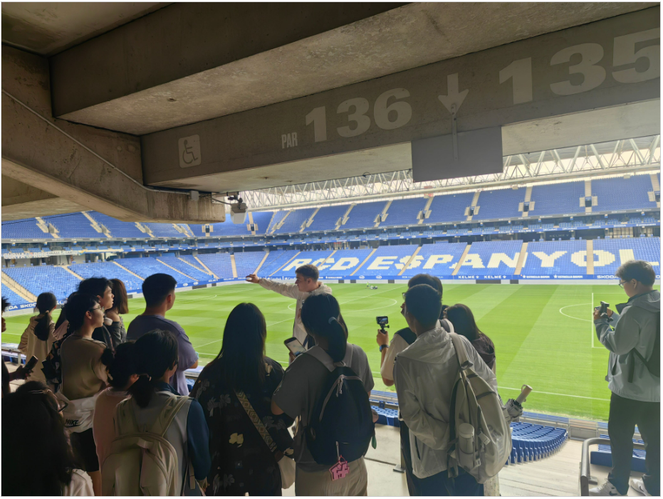 为拓展学生在运动医学领域的学术视野,研学团还专程前往西班牙人足球俱乐部主场和巴塞罗那ITTI体育学院,参加现场教学以及由巴塞罗那足球俱乐部专业理疗师主持的康复训练专题研讨。这一高水准的实践教学环节,将职业体育的实景观察与系统性理论授课深度融合,有效增进了同学们对现代竞技体育中损伤防护与康复体系的理解。