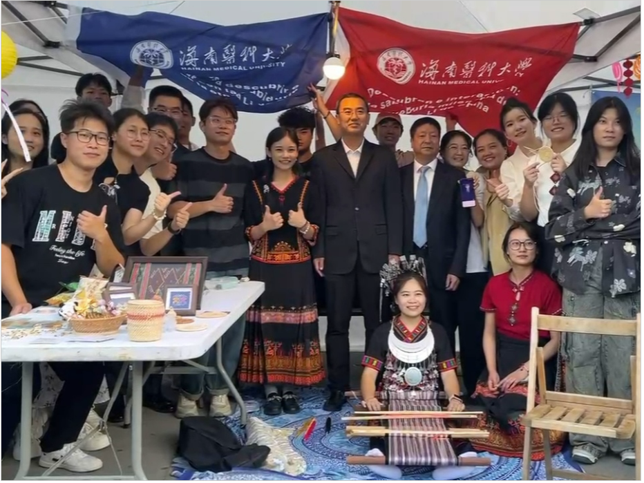在非遗展示环节,海南黎锦与藤编技艺成为文化节的焦点。同学们以专业的仪态,向国际友人细致讲解非遗的历史与技艺,生动展现中华优秀传统文化的魅力展示黎族藤竹编,以实际行动搭建起中西文化交流的桥梁。