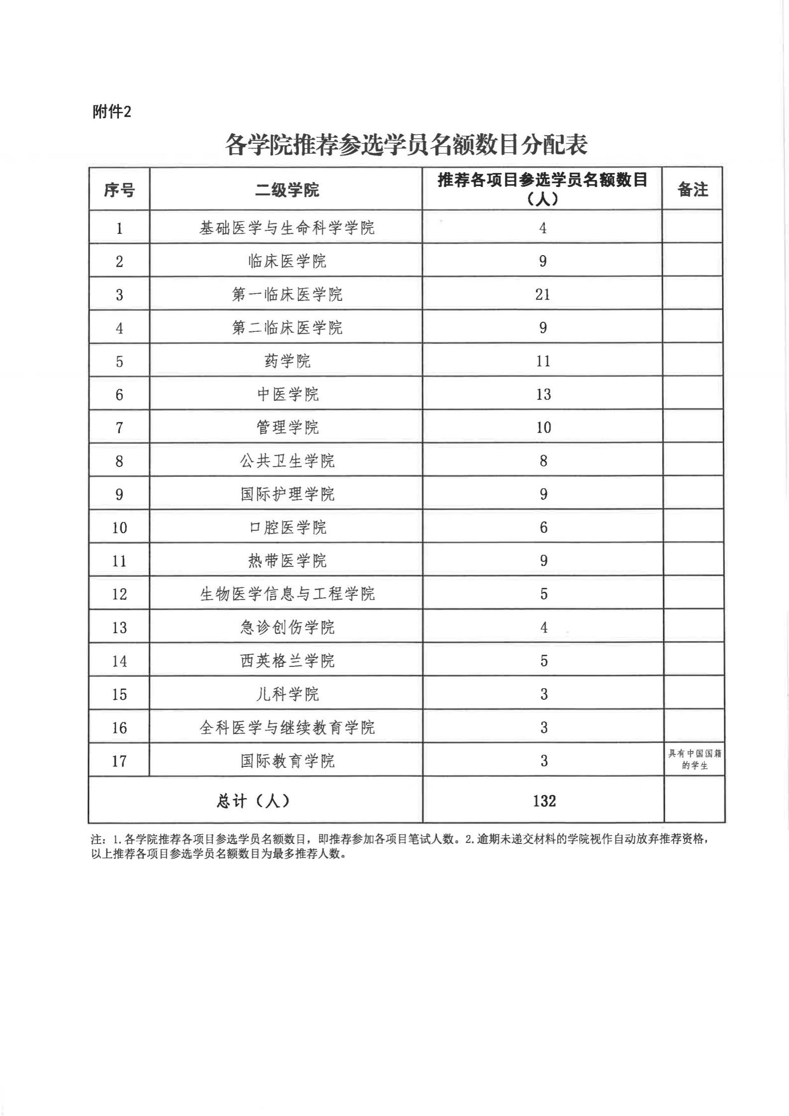 附件2 各学院推荐参选学员名额数目分配表.xls
