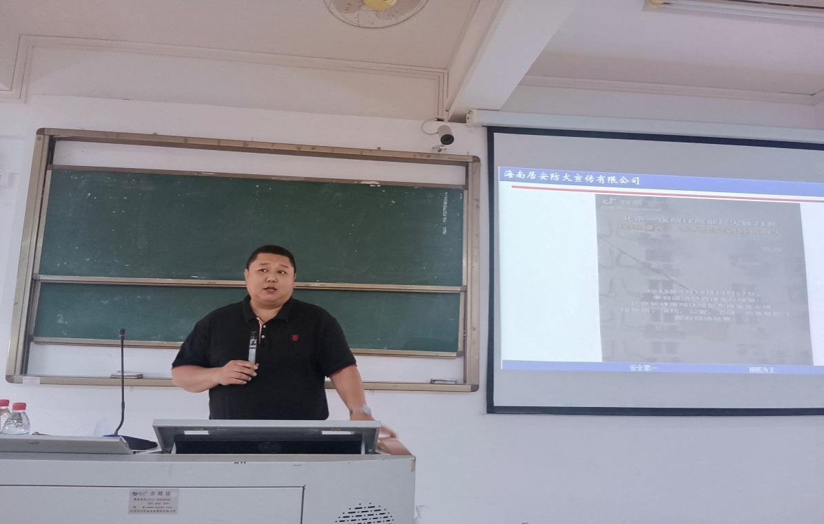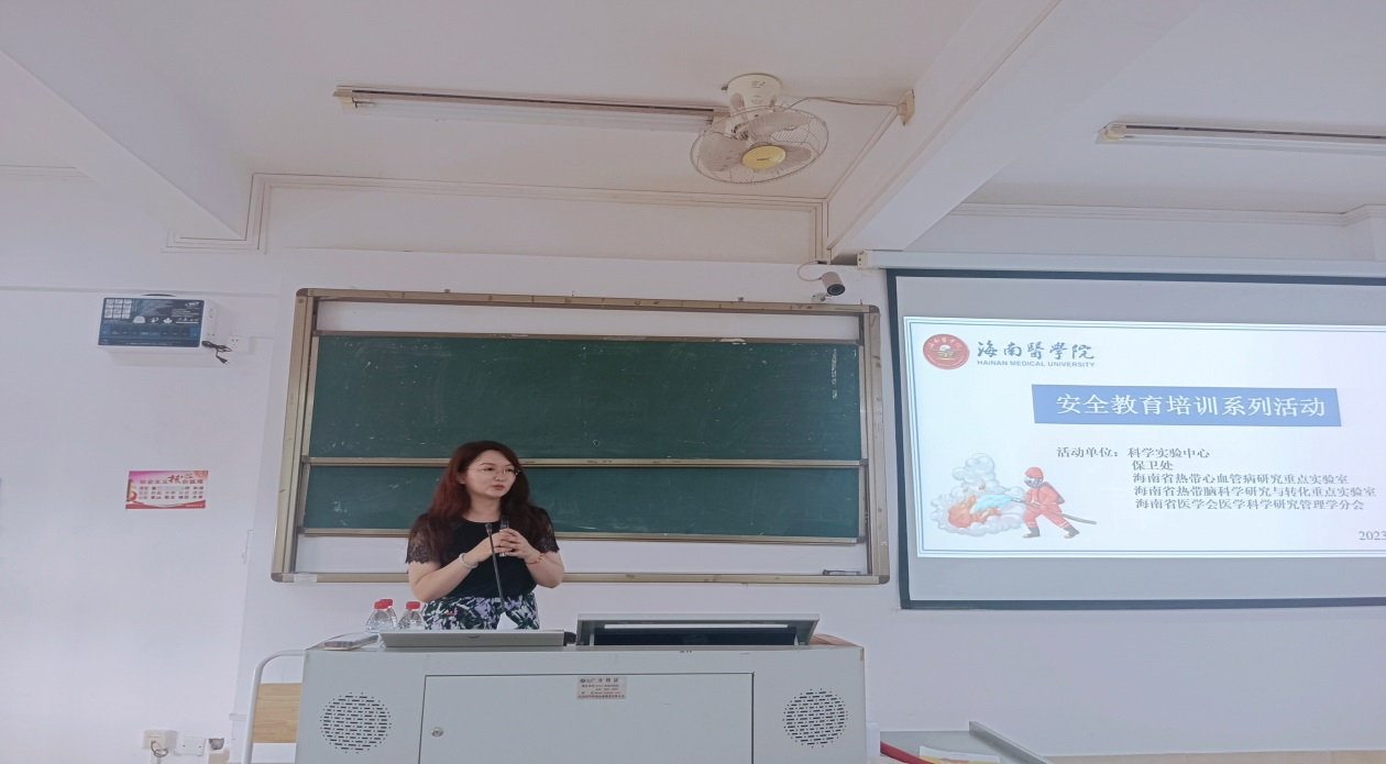 2023年5月30日下午,海南医学院科学实验中心联合保卫处特邀符东龙教官在城西校区实验楼举行实验室消防紧急疏散演练活动。科学实验中心郭峻莉主任、保卫处李忠副处长、科学实验中心张海英副主任、蒋洁副主任等人员参与了此次活动,科学实验中心、海南省热带心血管病研究重点实验室、海南省热带脑科学研究与转化重点实验室、海南省医学会医学科学研究管理学分会科学实验中心的全体老师、学生积极参与。郭峻莉主任作活动动员发言,指出实验室安全生产的重要性,并预祝此次消防演练活动圆满完成。此次活动分为中心规章制度解读、实验室安全讲座、消防安全知识讲座、火灾消防紧急疏散演练及灭火器实操五部分。