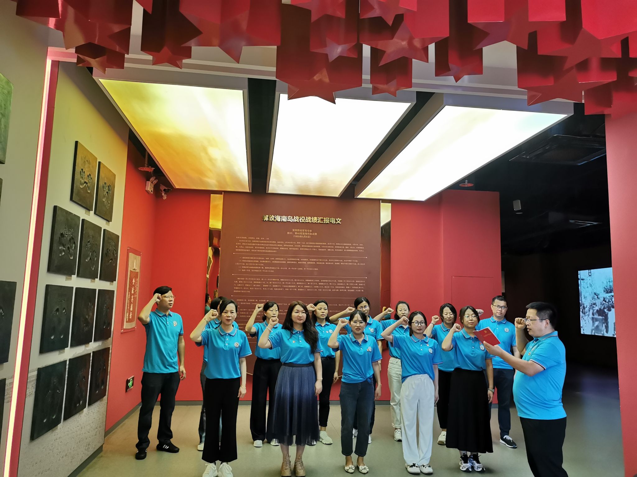 去往解放公园的路上,大家一起进行党史知识问答,红歌领唱等活动,充分激发大家的爱国情怀。上午十点,科学实验中心全体员工抵达解放公园,与海南省最大的革命历史纪念塑像-热血丰碑进行合影,近距离感受战士胜利呐喊的气势。随后大家依次参观了纪念馆里的各个展厅,革命纪念馆展厅介绍了解放海南战役的红色革命历史,这里展出了许多珍贵的图片、文献、实物。从历史背景、琼崖纵队、大练兵、文物展支前、木船打军舰等多场景中生动再现了那段波澜壮阔的历史。参观过程中,大家对革命纪念馆里展出的许多文物和实物都非常感兴趣,表示:“参观红色革命纪念馆是一次很好的党性教育,也是一次生动的爱国主义教育。”参观结束后,全体党员同志在先辈们的手印与足迹面前,重温了入党誓词,沿着先辈的足迹,接续先辈的信仰,牢记历史责任,提高自身能力,为共产主义的实现作出更大的贡献。