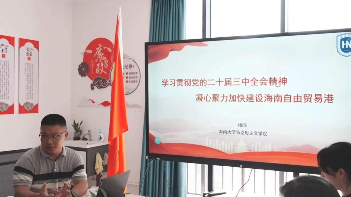 杨老师分别从党的二十届三中全会基本概况、如何认识党的二十届三中全会精神、如何践行党的二十届三中全会精神等三个方面对二十届三中全会进行了深入的剖析讲解,结合海南省委出台的《中共海南省委关于贯彻落实党的二十届三中全会精神、奋力争当新时代改革开放示范的实施意见》文件对海南全面深化改革,特色优势的改革领域进行阐述。杨老师讲课理论联系实际,晦涩难懂的文件内容通过通俗易懂的语言使党员们在这次学习当中受益良多。