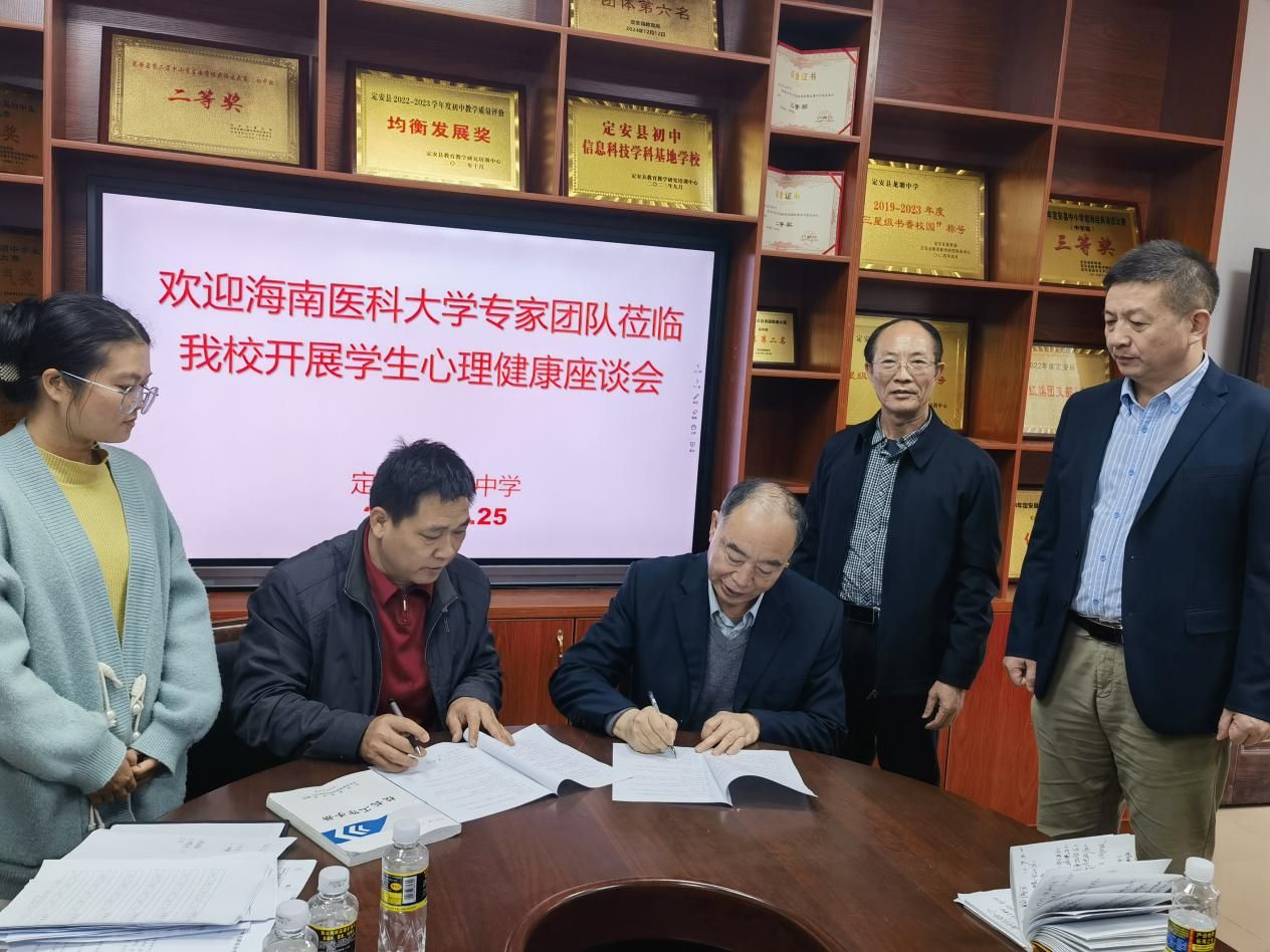 最后,周书俊和吴忠学分别代表taptap点点官网马克思主义学院(人文社会科学部)和定安县龙塘中学签署了为期5年的《大中小学思政课一体化建设合作协议》,并共同为“taptap点点官网心理健康教育工作站(定安县龙塘中学)”揭牌。