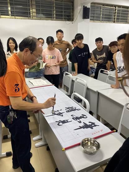 王身坚老师在课堂上向同学们详细生动地逐一讲解了书法的定义、书法简史、书体简介、文房四宝、学习书法的意义以及怎样学好书法等六大部分的内容,并与同学们进行了充分的交流互动,回答了同学们提出的一系列问题,在教学现场进行了书法作品书写展示,很好地丰富了同学们的书法理论知识,为同学们学好书法提供了有力的指导。